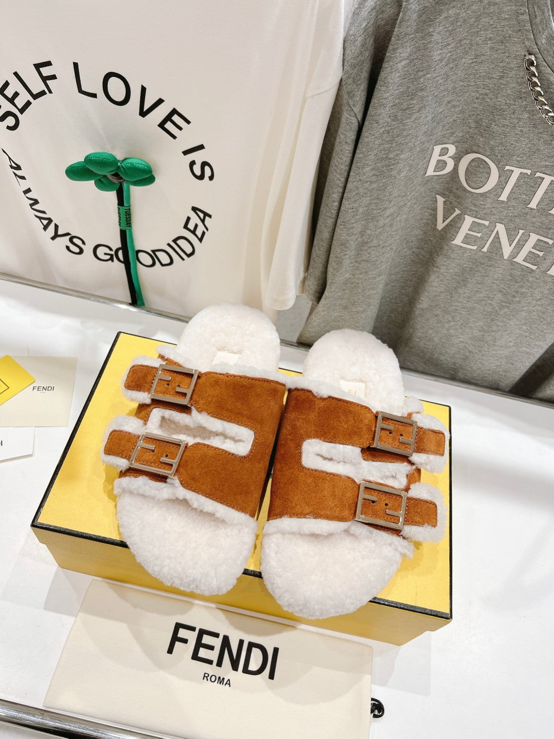 FENDI DAD SANDAL IN MOCHA BROWN FLEECE