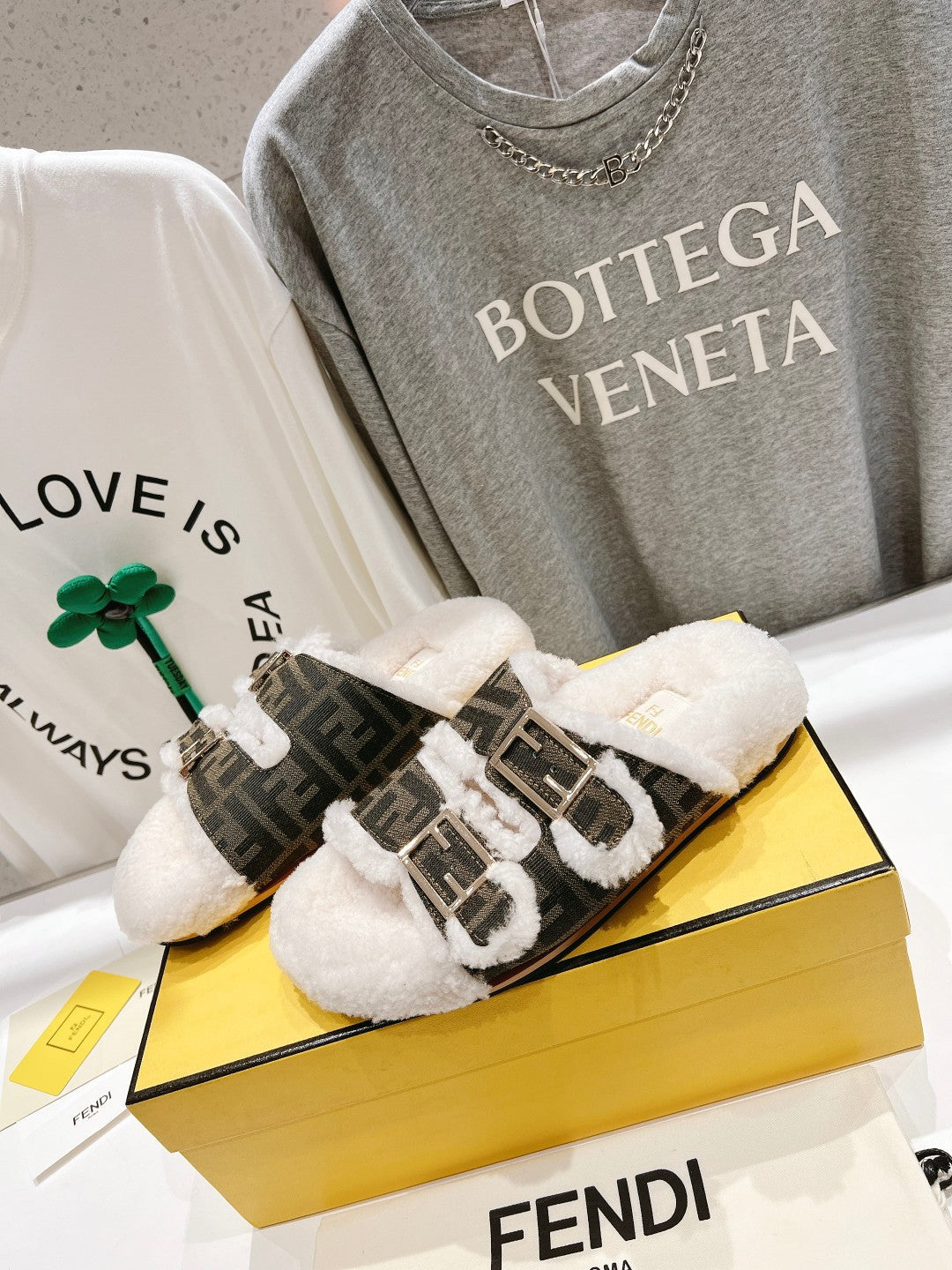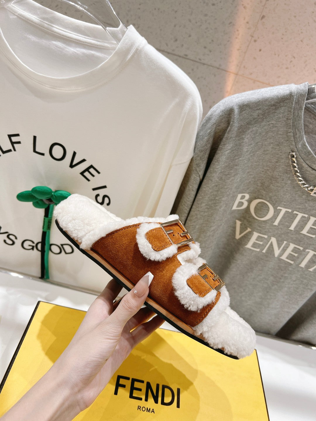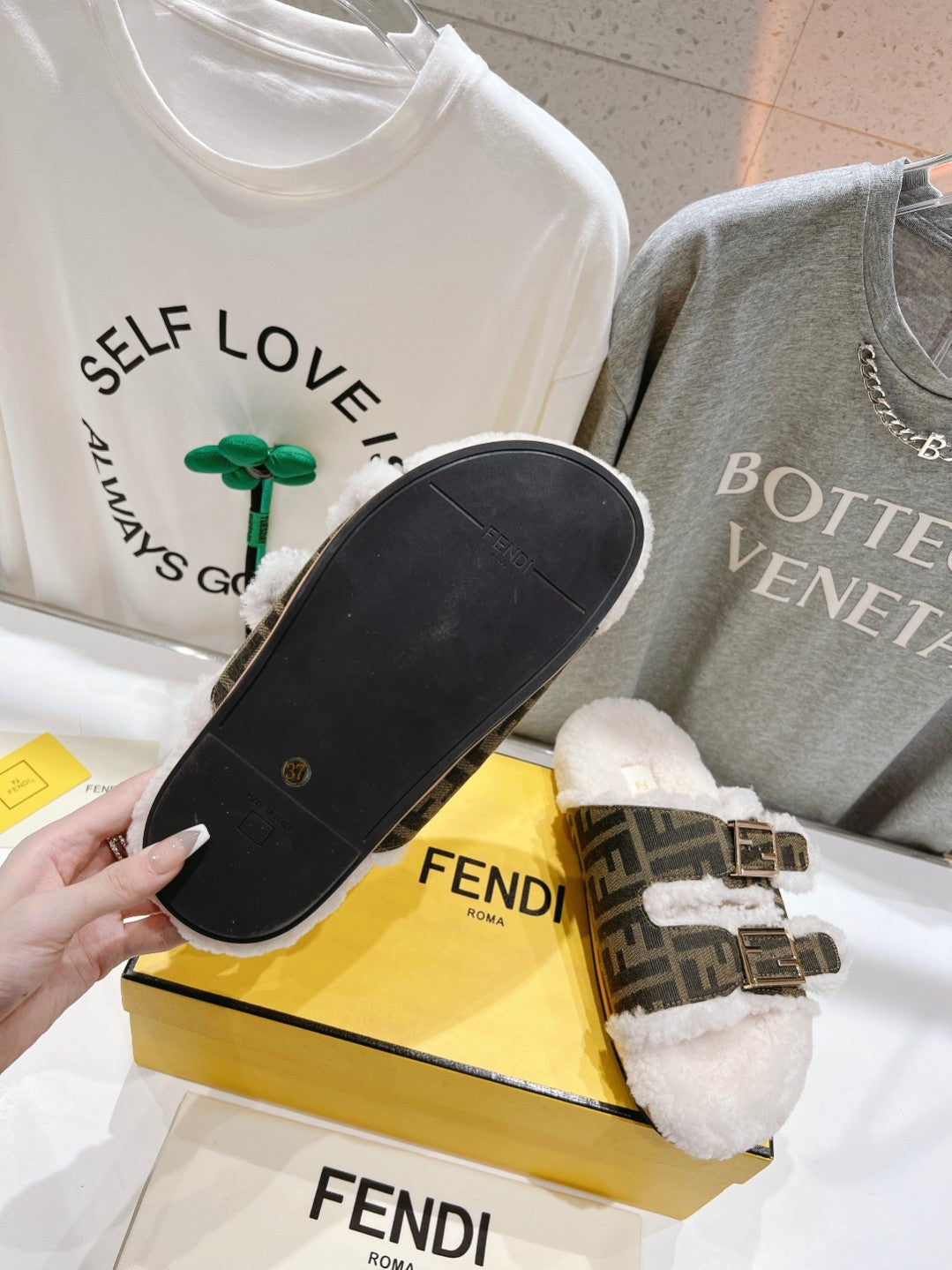 FENDI DAD SANDAL MULE IN BLACK SUEDE WITH FLEECE WITH GOLD HARDWARE