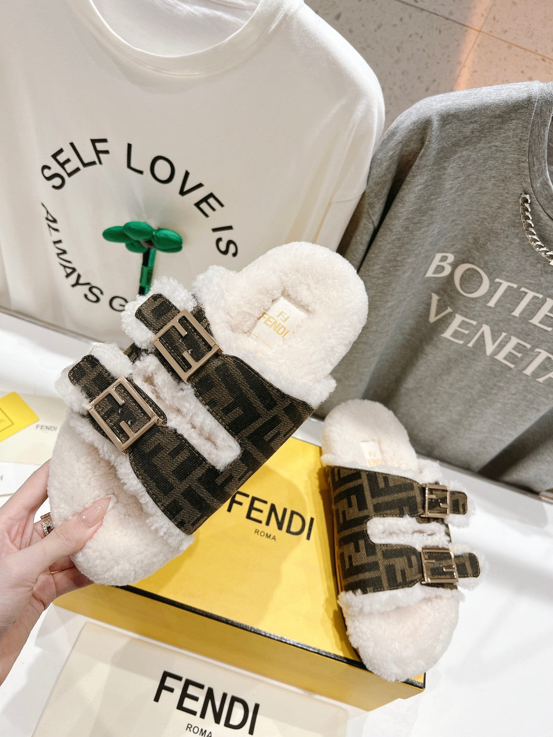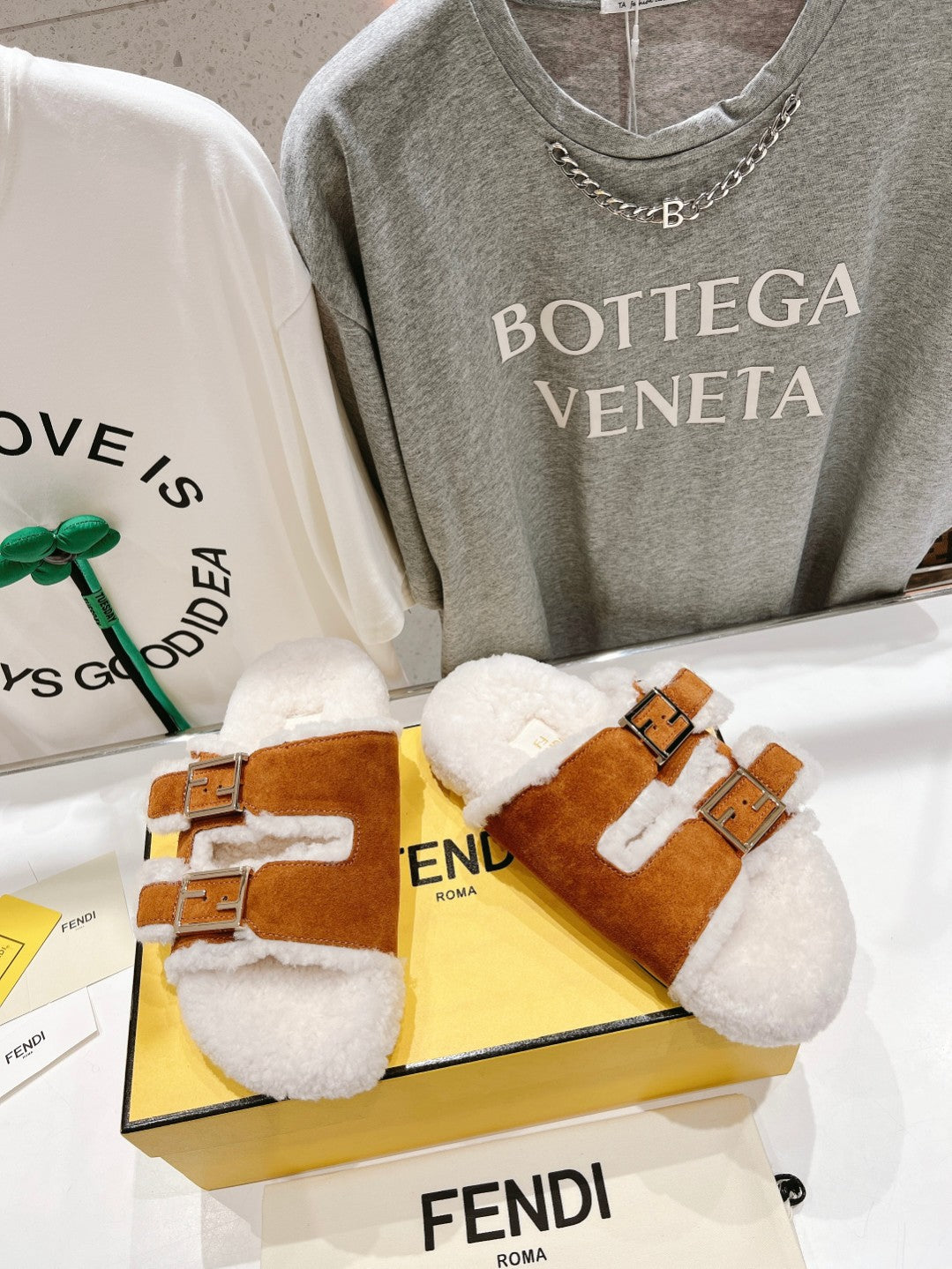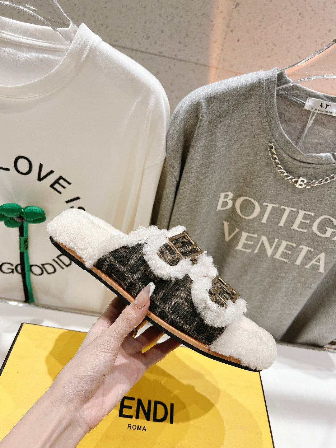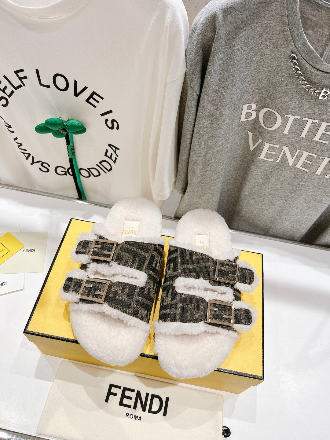 FENDI DAD SANDAL MULE IN BLACK SUEDE WITH FLEECE WITH GOLD HARDWARE