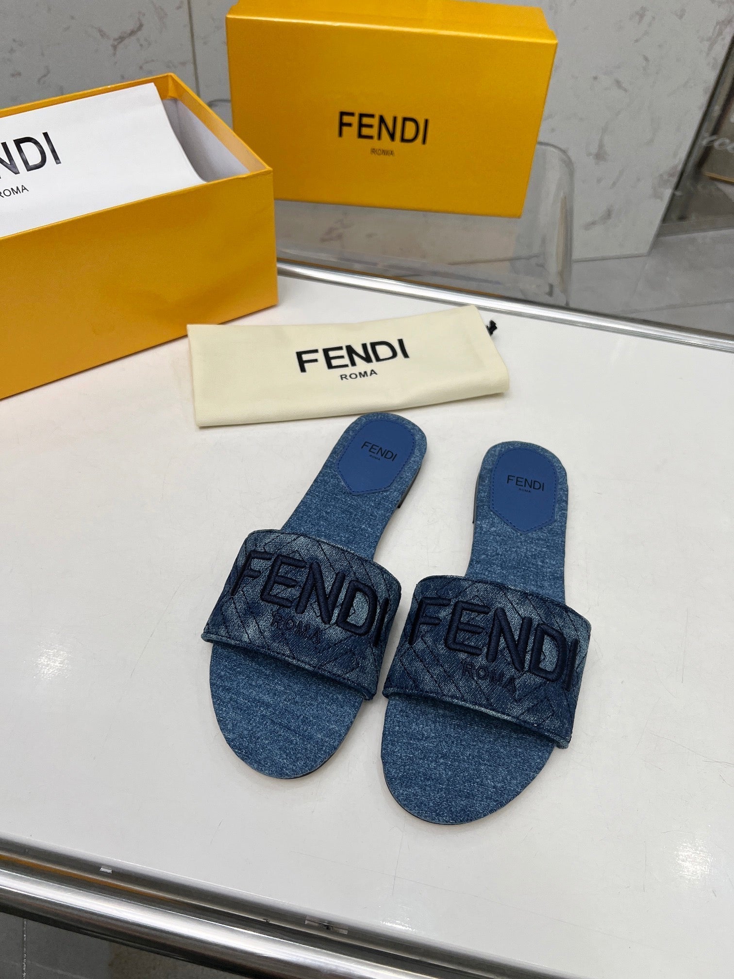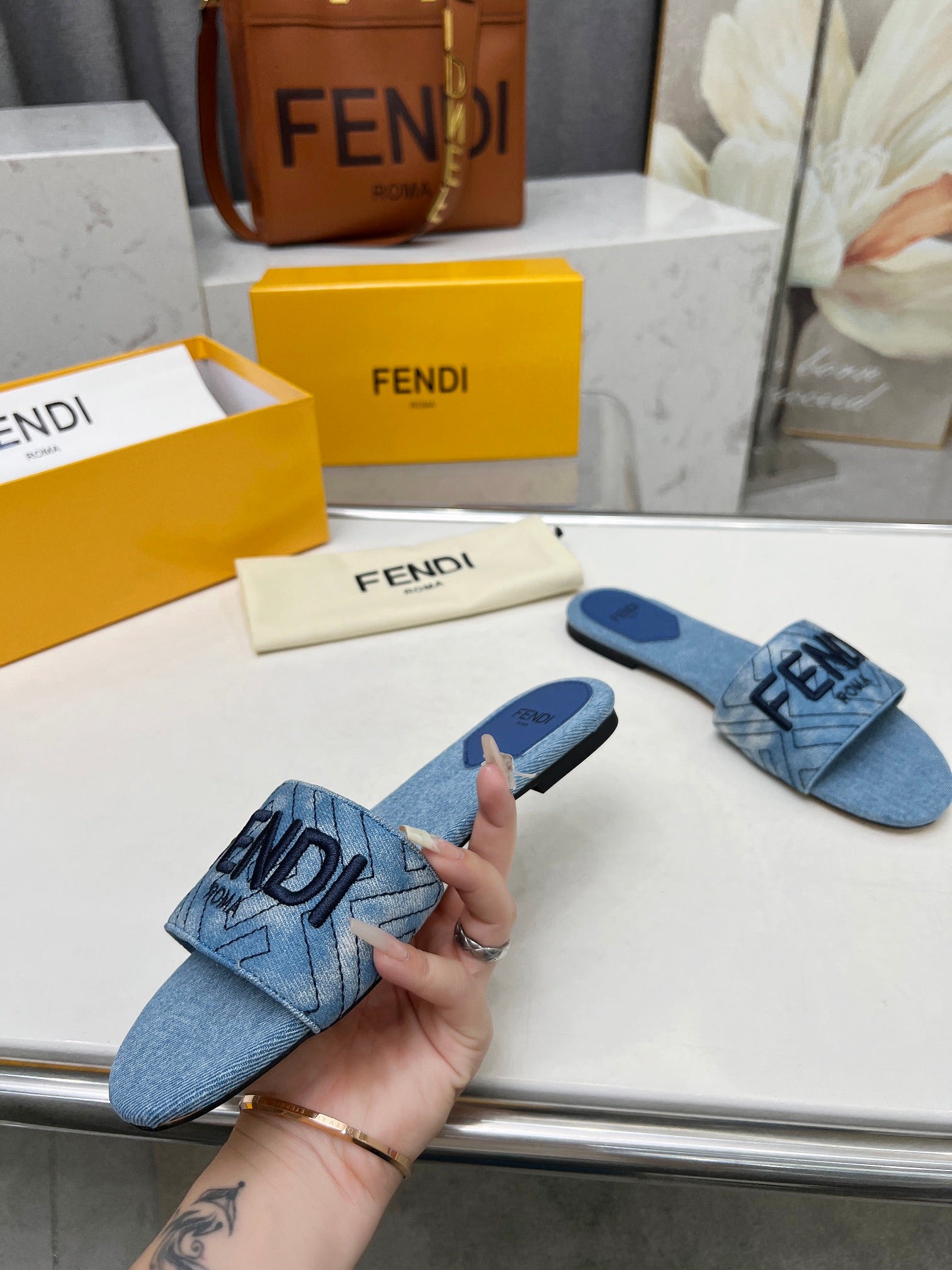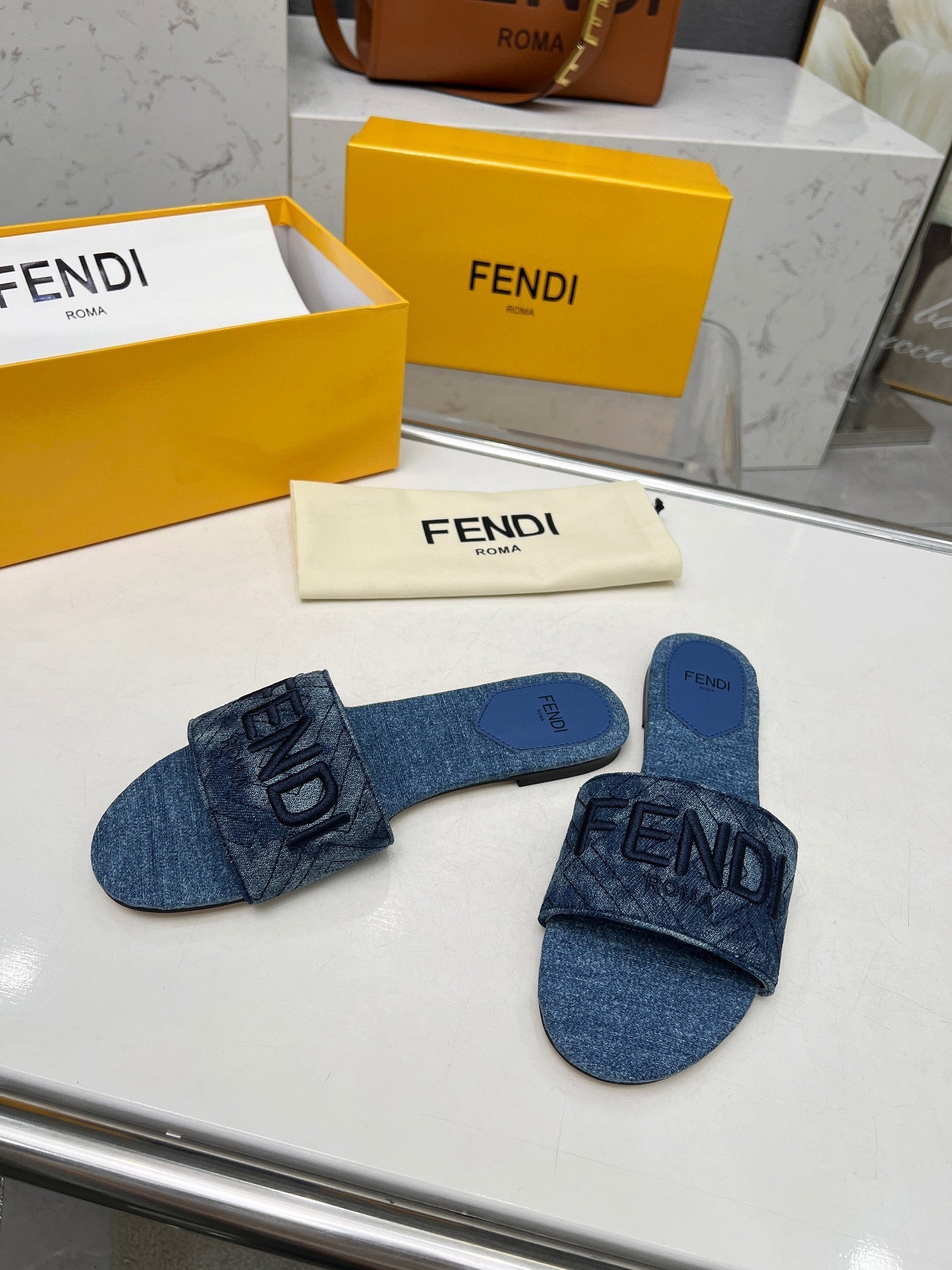 FENDI FILO BALLET IN SAPHIRE BLUE LAMBSKIN WITH GOLD HARDWARE