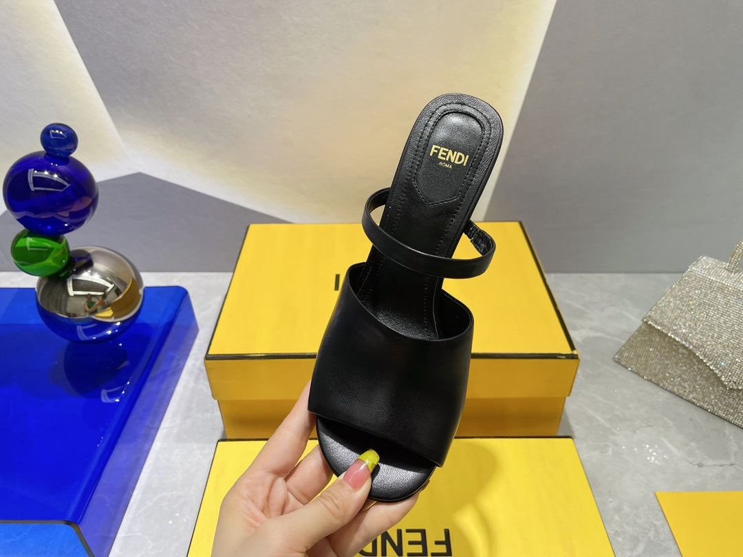 FENDI FIRST HIGH HEEL 95 MM SANDAL IN BLACK MINK FUR