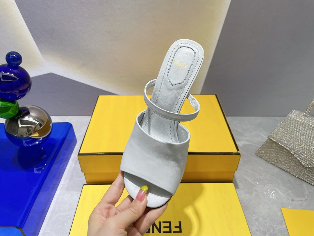 FENDI FIRST HIGH HEEL 95 MM SANDAL IN WHITE MINK FUR