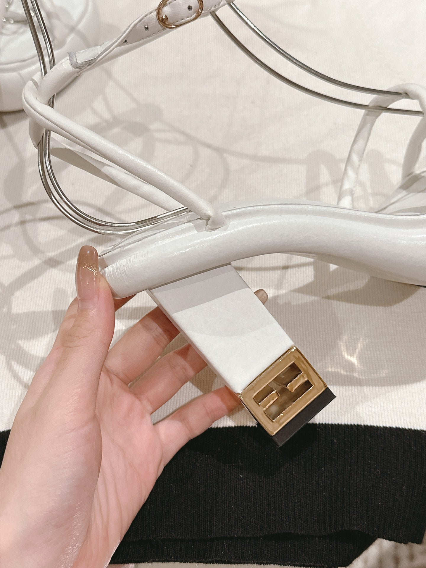 FENDI BAGUETTE HIGH HEELS 85MM IN WHITE LAMBSKIN WITH GOLD HARDWARE