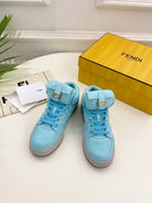 FENDI LOGO SOCK SNEAKER BOOTS IN SKY BLUE LAMBSKIN