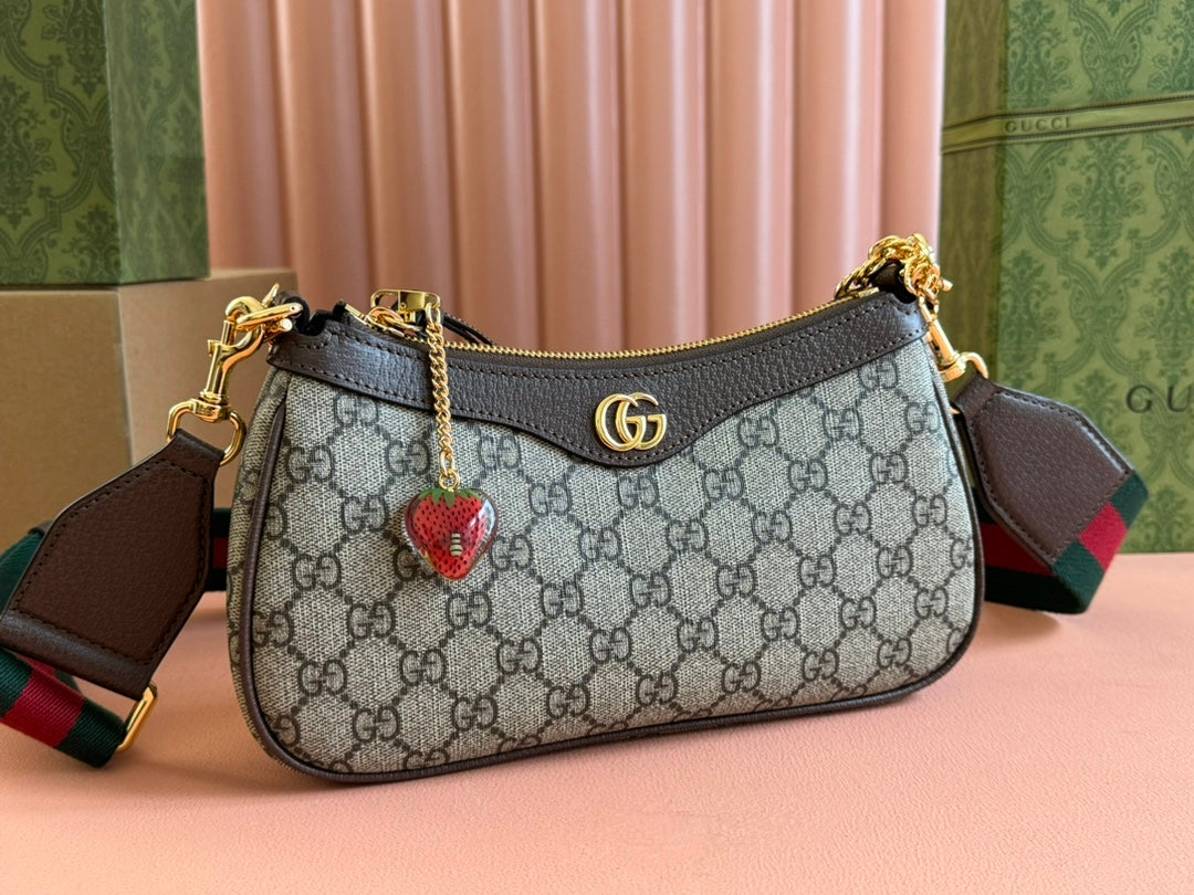 GG OPHIDIA SMALL 23 BAG IN BEIGE AND EBONY SUPREME CANVAS