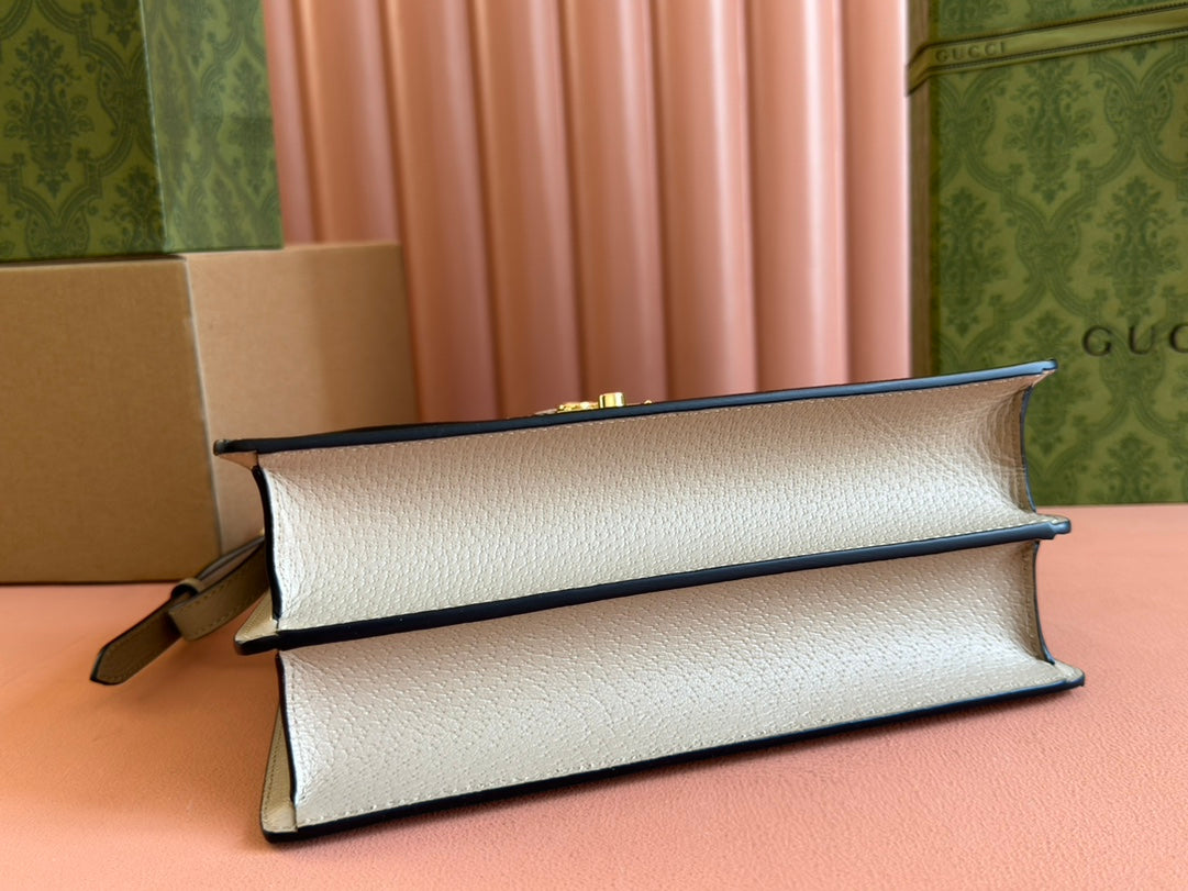 GG PADLOCK SMALL 24 BEIGE CANVAS BLACK CALFSKIN