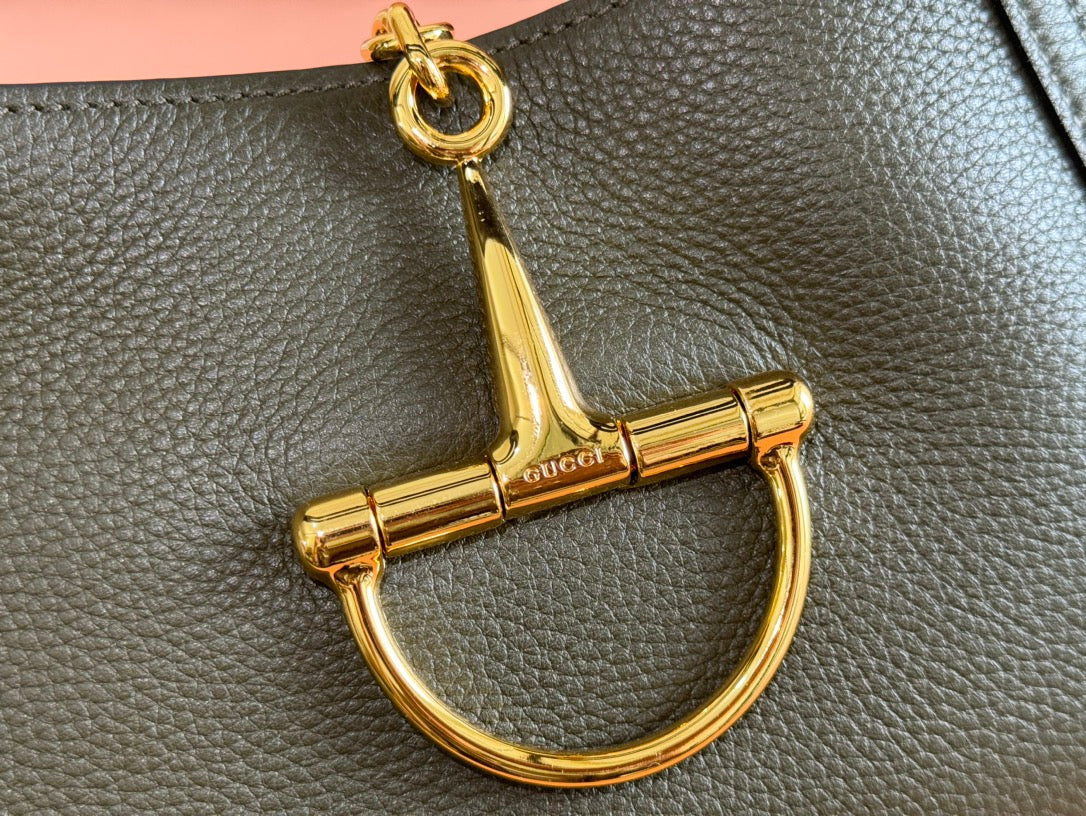 GG 1955 Horsebit Bag 25cm Brown Leather Beige Canvas Gold Hardware