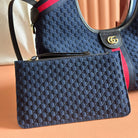 GG 2025 Giglio SmallTote Bag 25cm Dark Blue Red Suede Canvas 273270
