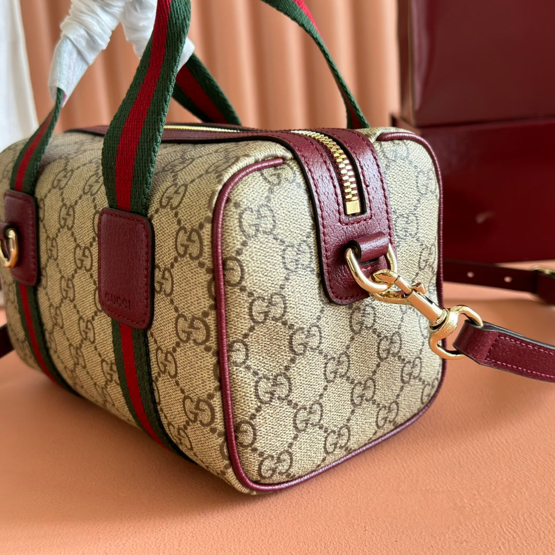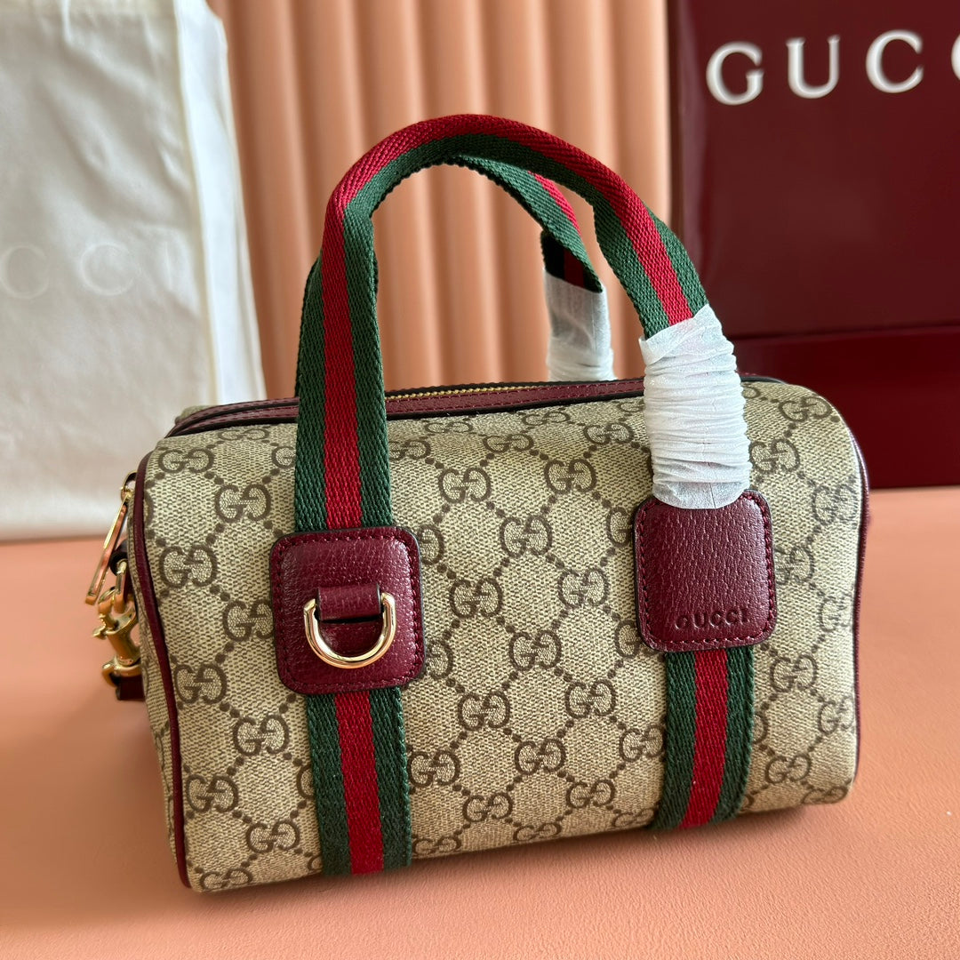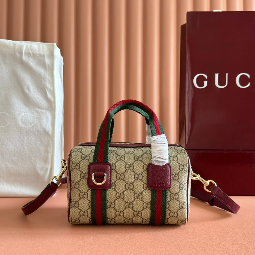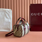 Gucci Boston Bag 20 Beige Brown Denim Fabric 271896