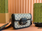 Gucci Horsebit Bag Ebony Blue Black Leather Canvas 244258