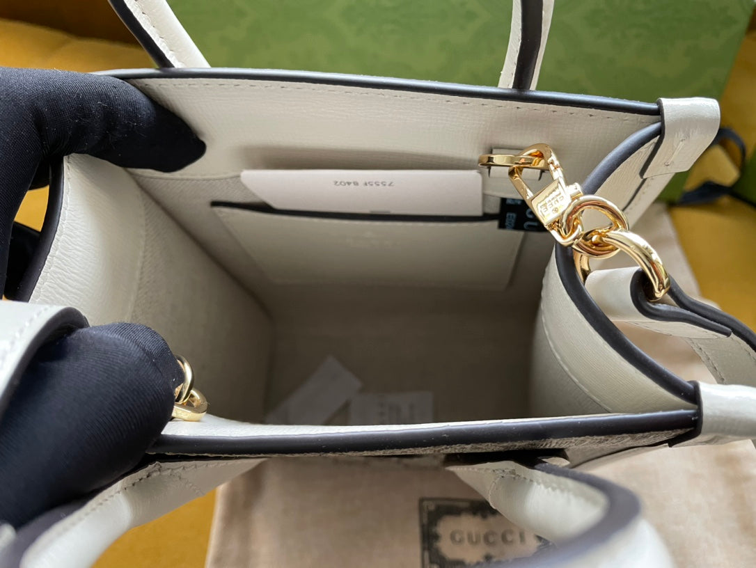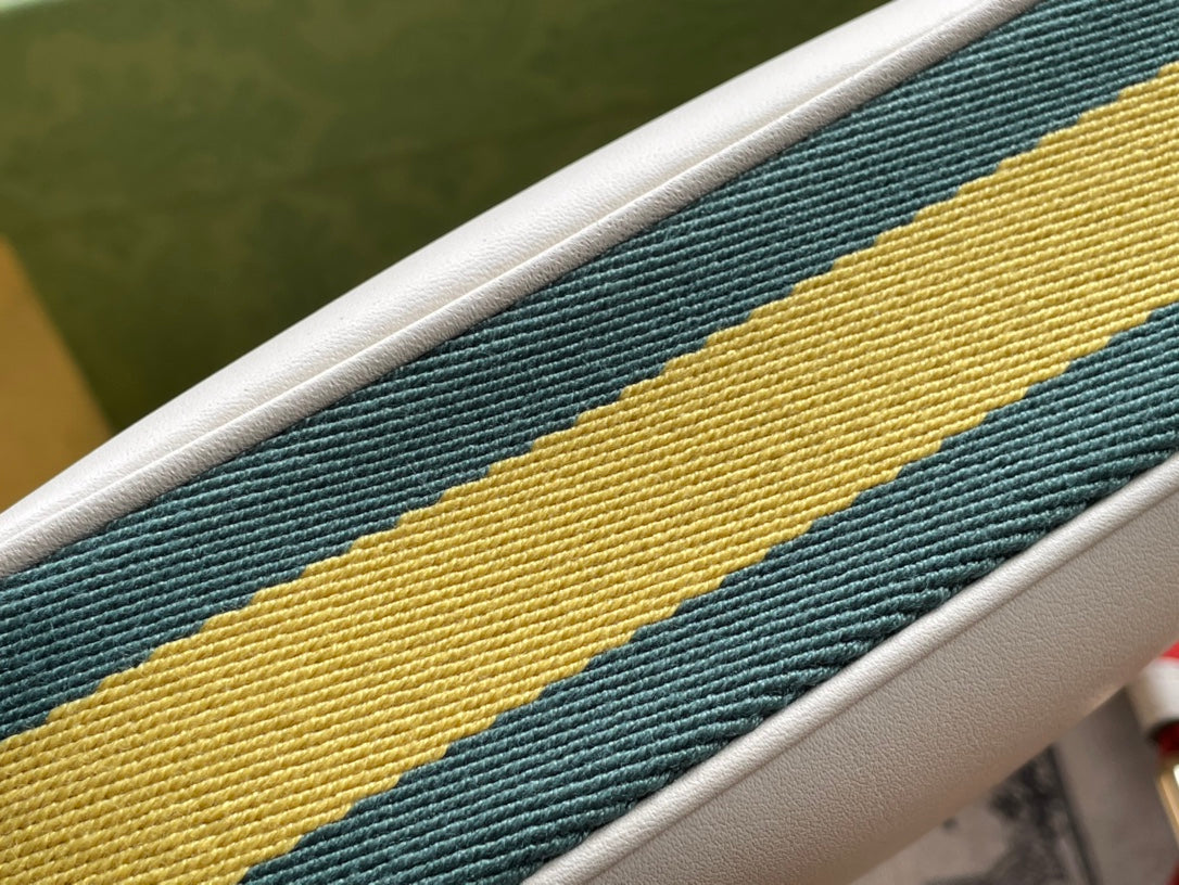 GG OPHIDIA 24 TOTE IN BEIGE CANVAS AND WHITE CALFSKIN