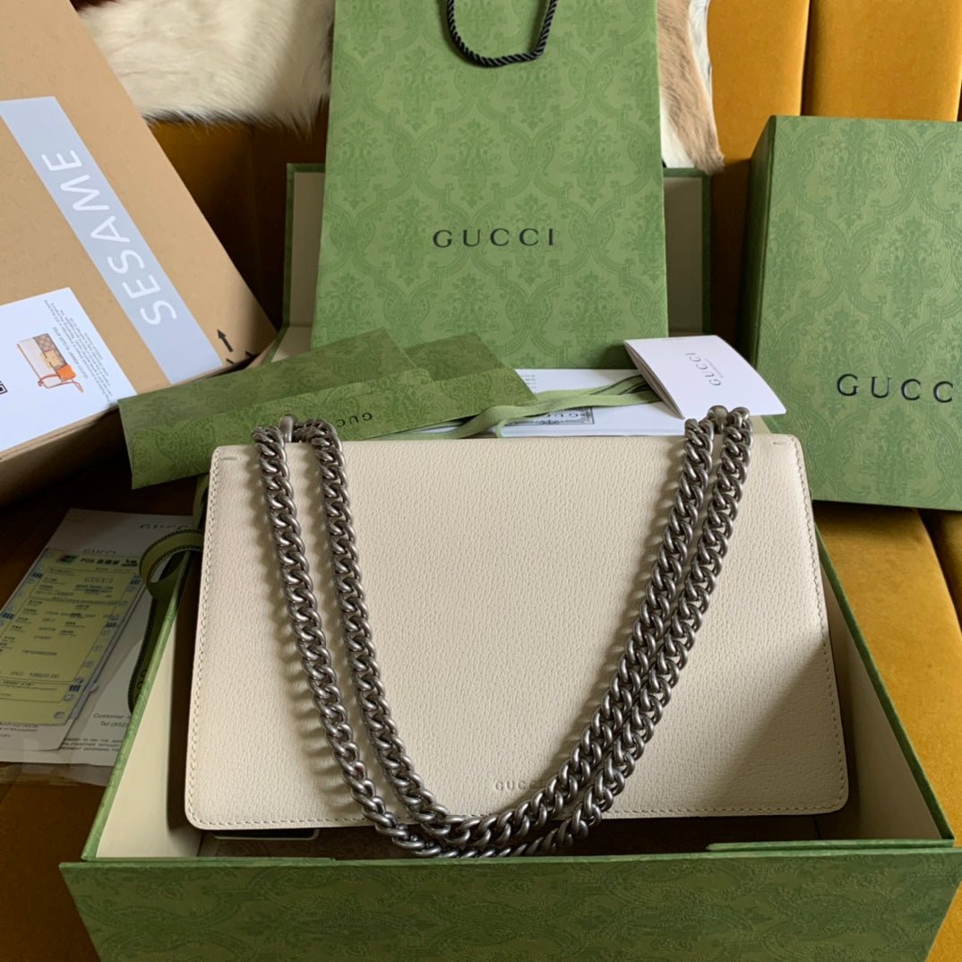 Gucci Marmont 21cm Shoulder Bag White Leather 333534