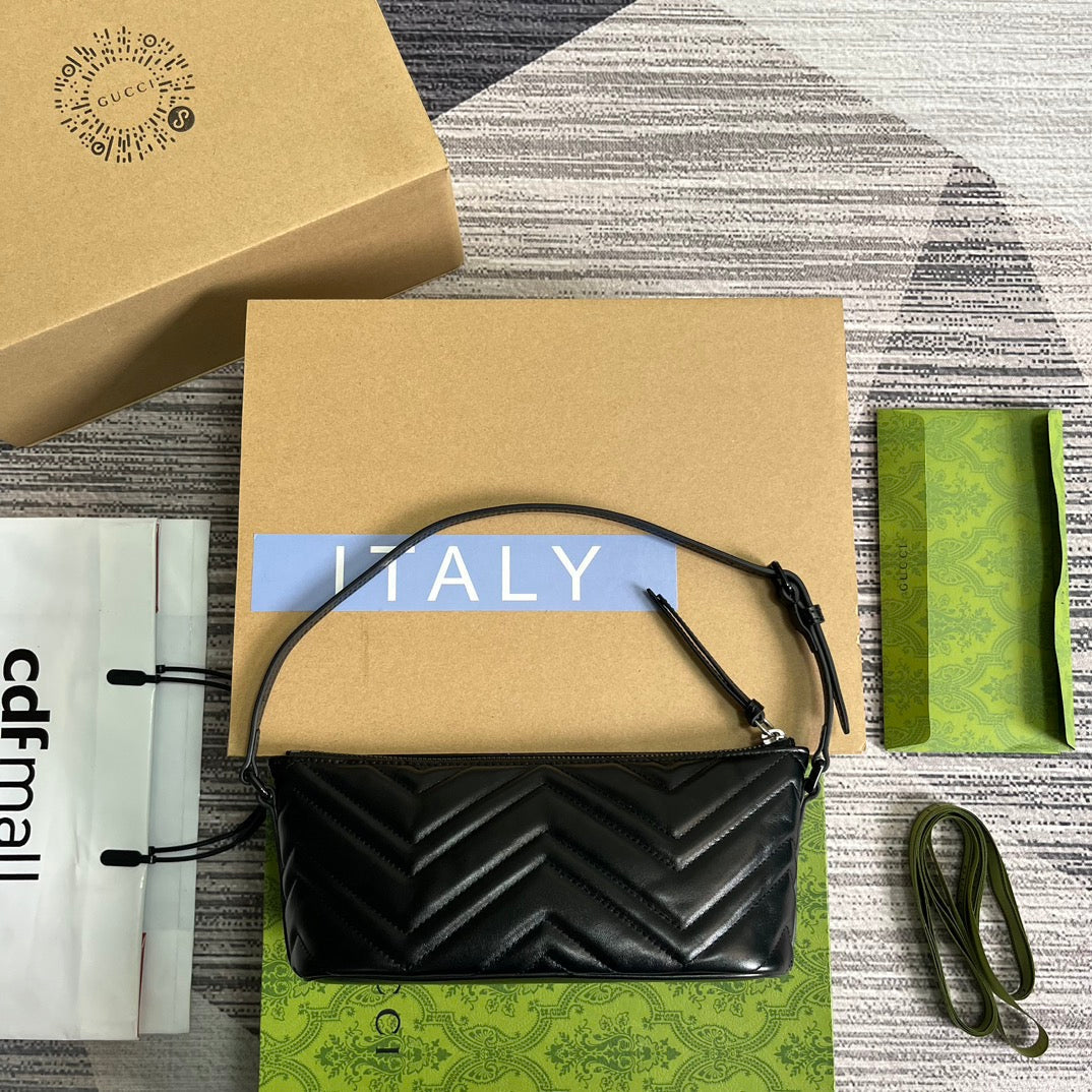 Gucci Marmont 21cm Shoulder Bag Black Leather 333535