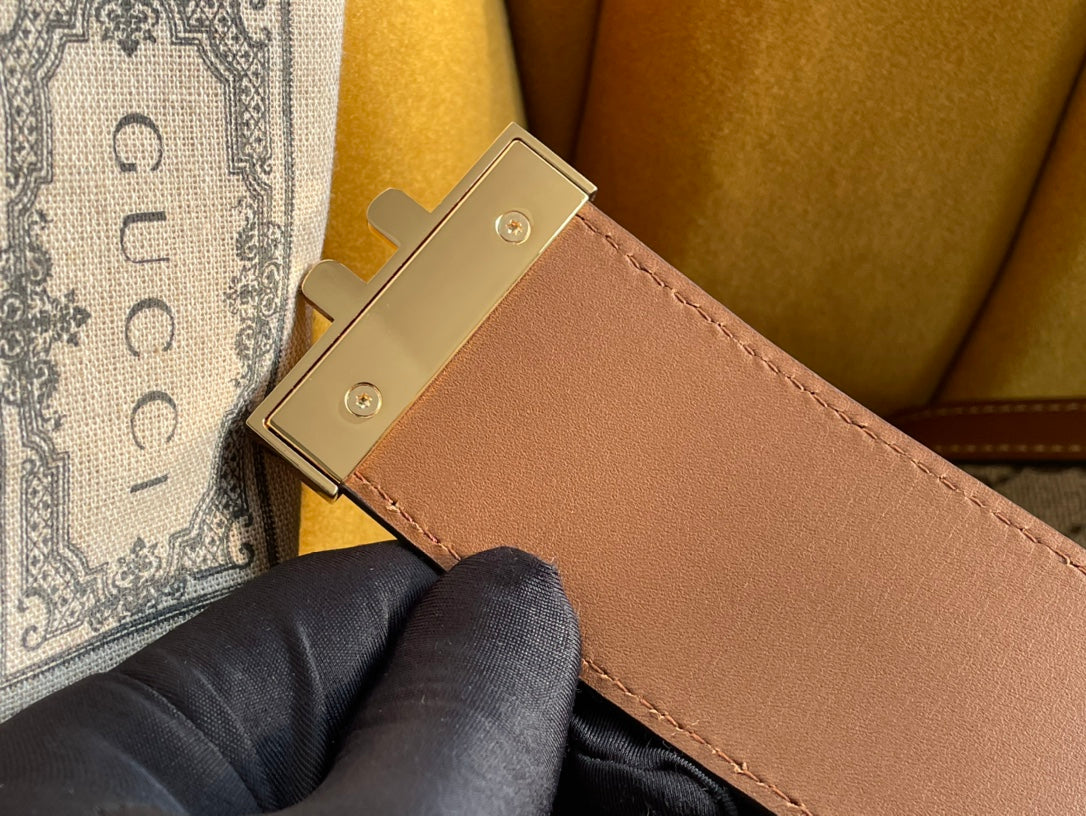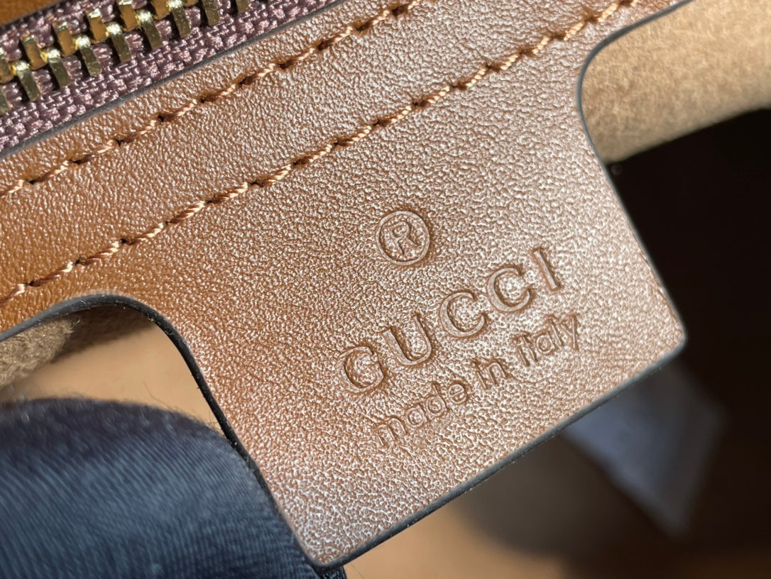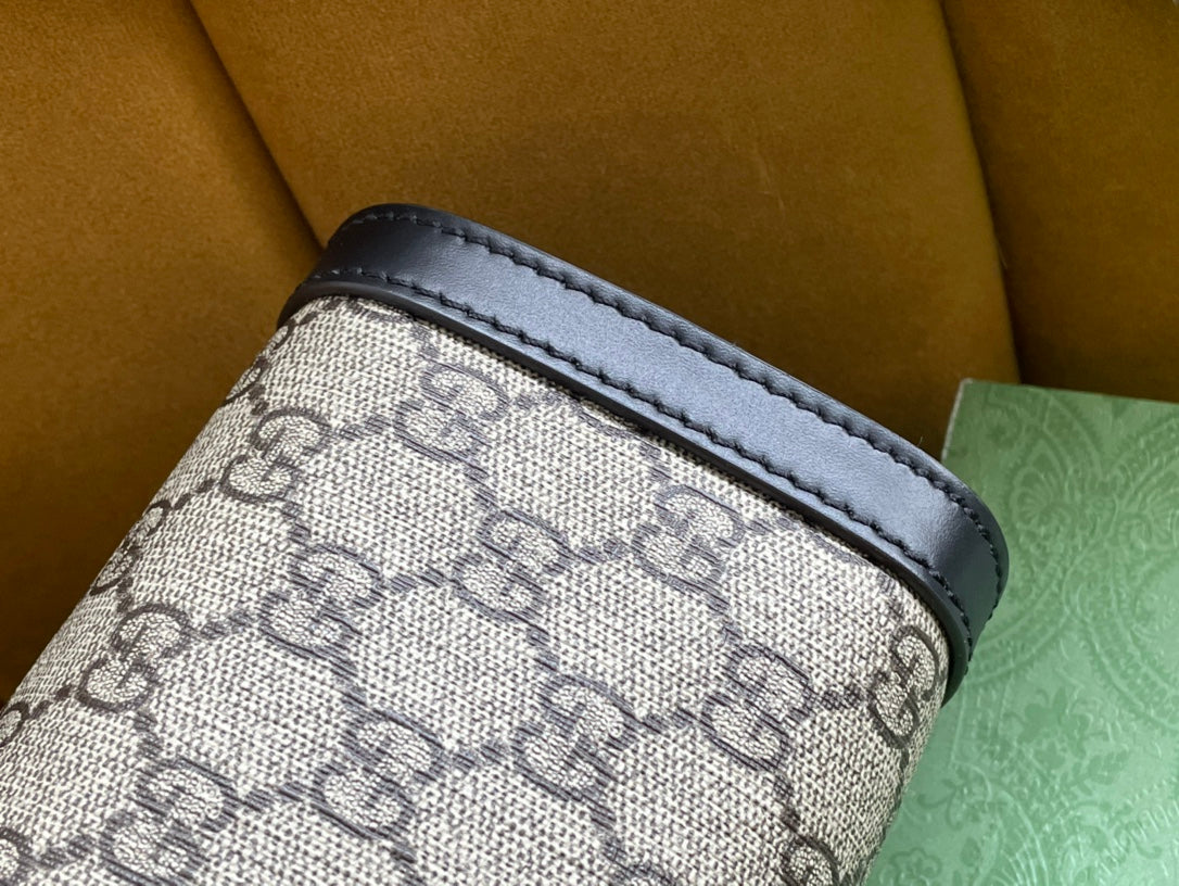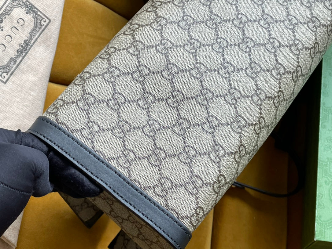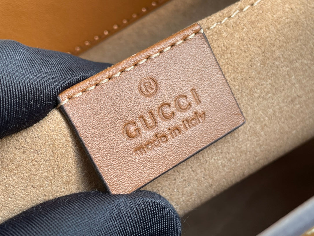 GG OPHIDIA SMALL 26 BUCKET BAG IN BEIGE CANVAS AND BROWN CALFSKIN