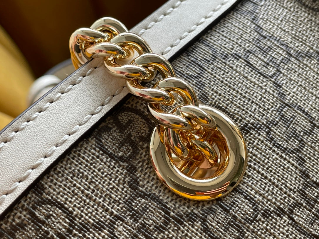 GG PADLOCK MEDIUM 26 SHOULDER BAG BEIGE CANVAS AND WHITE CALFSKIN