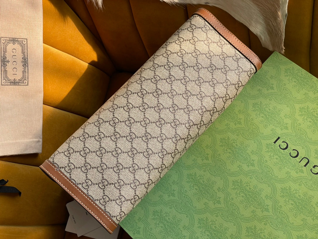 GG CLASP CLUTCH 20 IN BEIGE CANVAS AND BROWN CALFSKIN