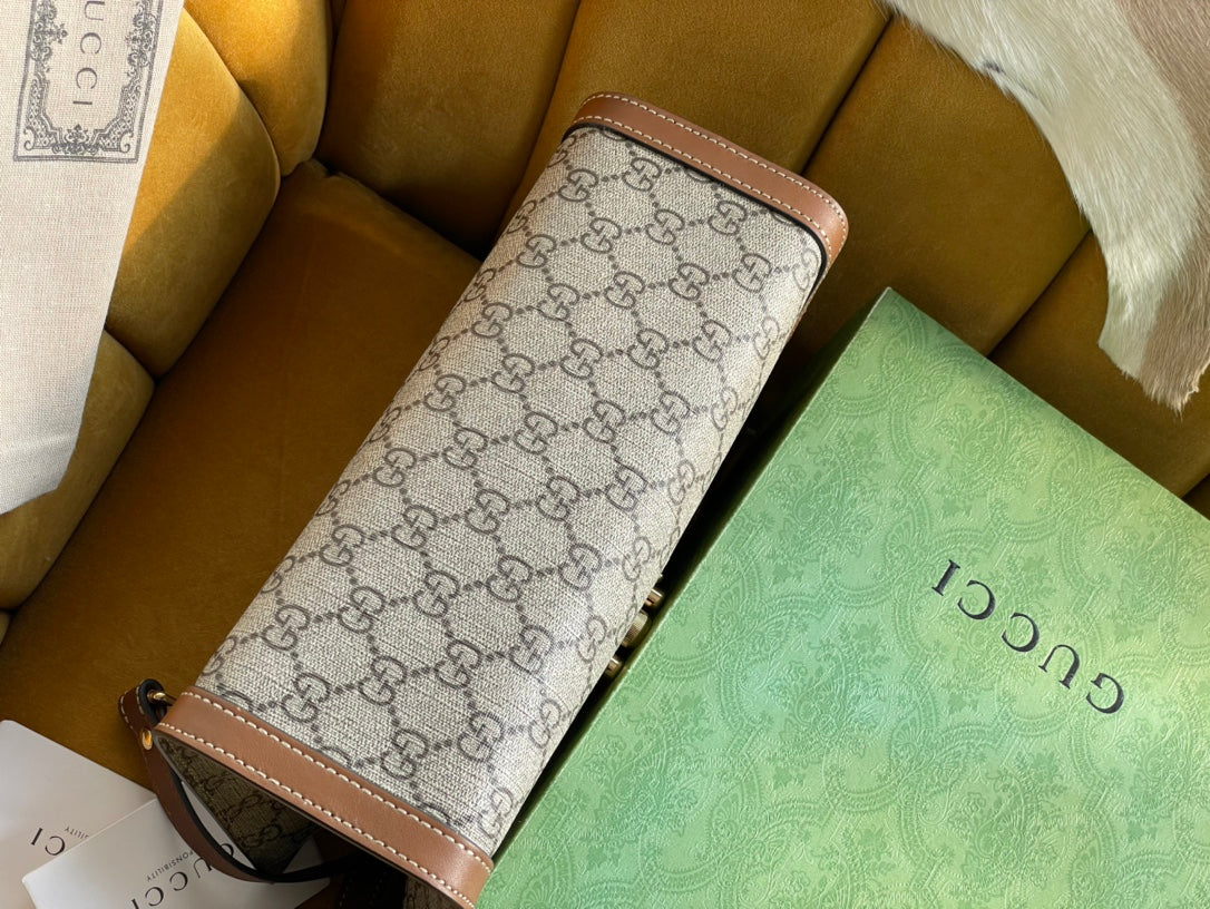 GG PADLOCK LARGE 35 SHOULDER BAG BEIGE CANVAS AND BROWN CALFSKIN