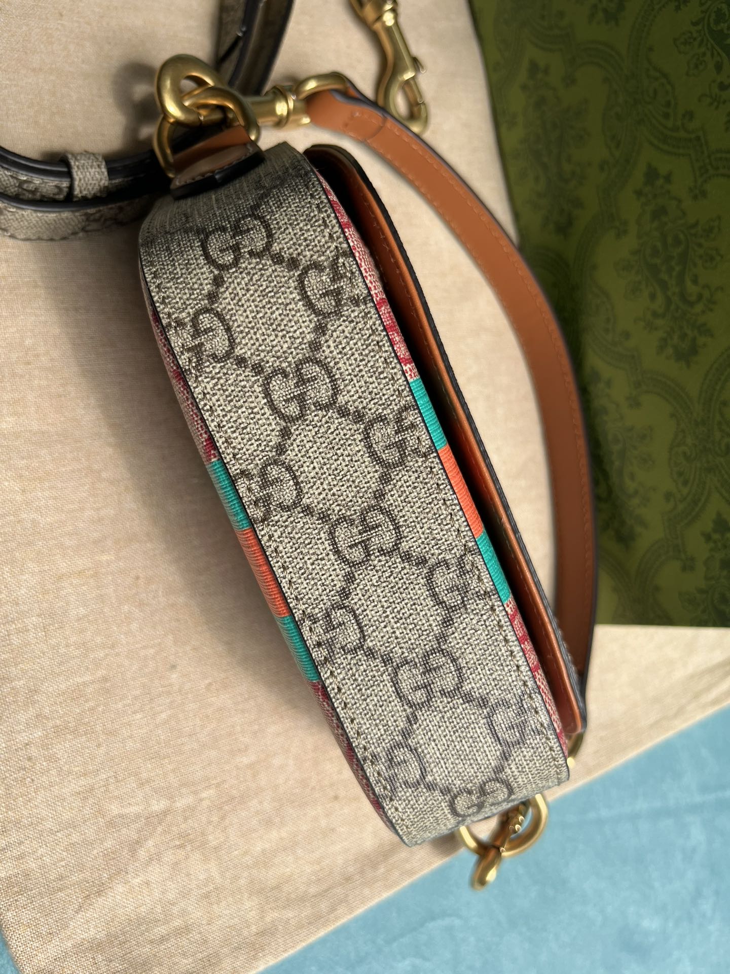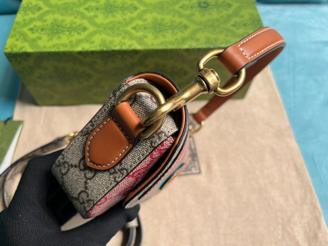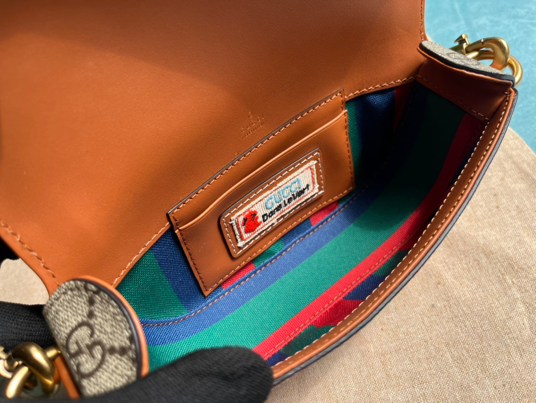 GG MINI 25 PRINTED SADDLE BAG IN EICRU BEIGE CANVAS