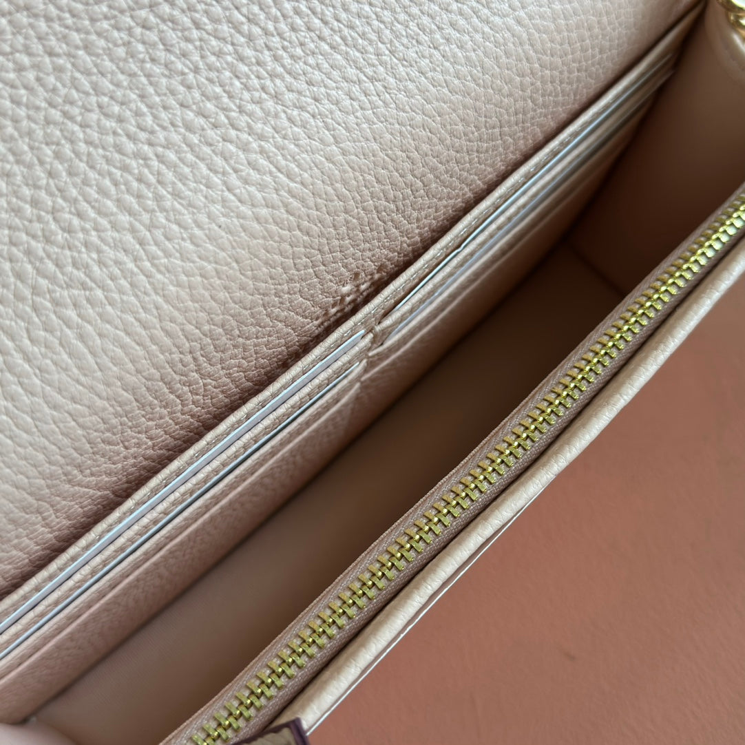 Gucci Marmont Chain Wallet Beige Cowhide 254972