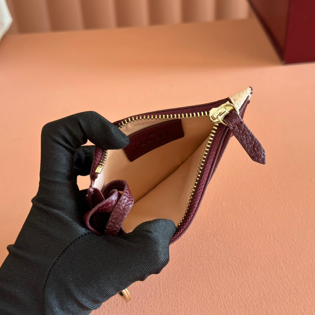 GG Marmont Card Case Zipper Wallet Rosso Ancora Red Leather 255164