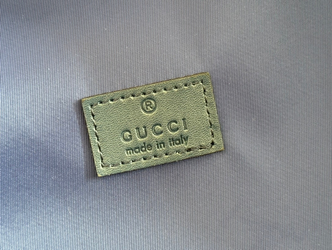 Gucci Emblem Mini Shoulder Bag Beige Green Canvas Leather 244543