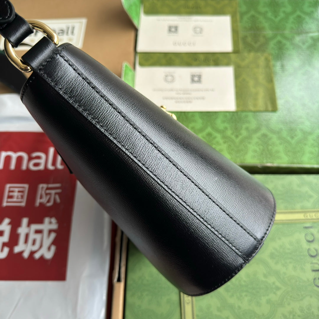 MINI BUCKET SHOULDER BAG 20 IN BLACK CALFSKIN GOLD HARDWARE