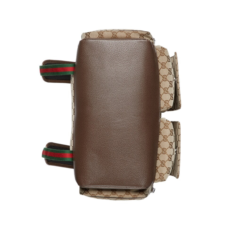 DIAPER BAG 40 WITH WEB IN BEIGE AND EBONY CANVAS MIX BROW CALFSKIN