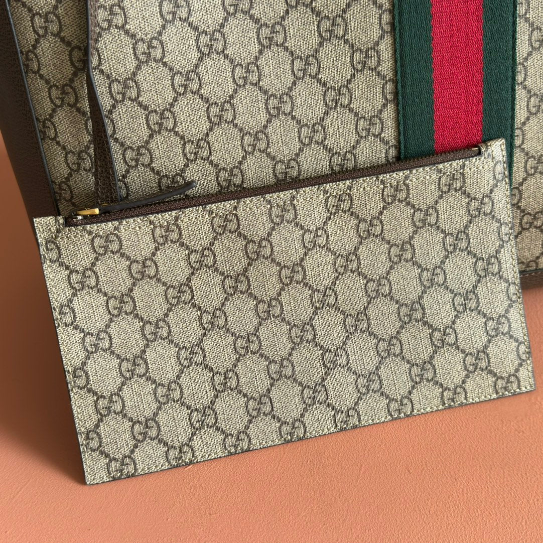 GG 2025 Ophidia Tote Bag 44cm Ebony Brown Canvas Leather 273715