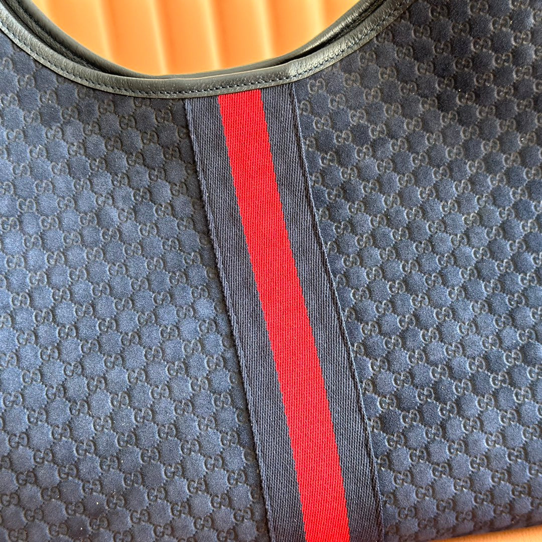 GG 2025 Giglio SmallTote Bag 25cm Dark Blue Red Suede Canvas 273270