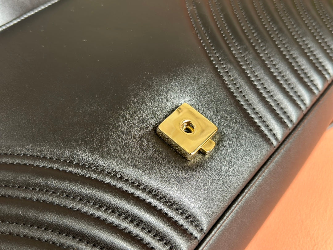 EQUESTRIAN STYLE SHOULDER BAG 21 IN BLACK CALFSKIN GOLD HARDWARE