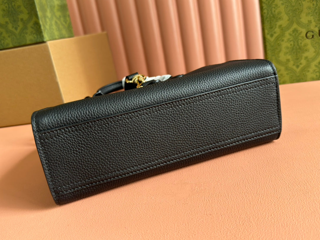 JACKIE SMALL TOTE BAG 24 IN BLACK CALFSKIN GOLD HARDWARE