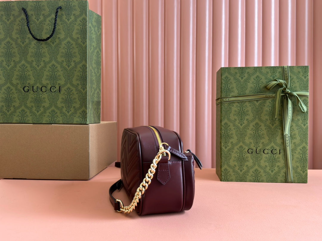 MARMONT SHOULDER BAG 40 IN WINE RED CALFSKIN GOLD CHAIN