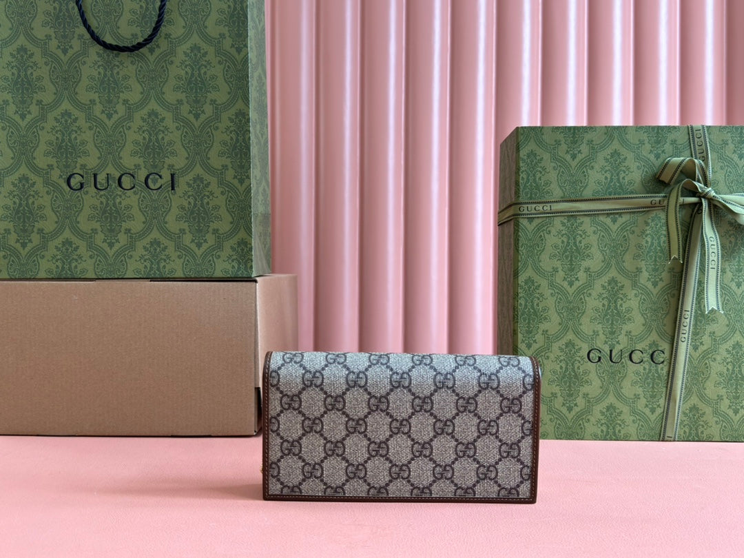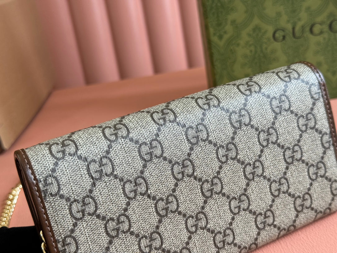 HORSEBIT 1955 WALLET IN BEIGE EBONY CANVAS MIX WHITE CALFSKIN GOLD CHAIN