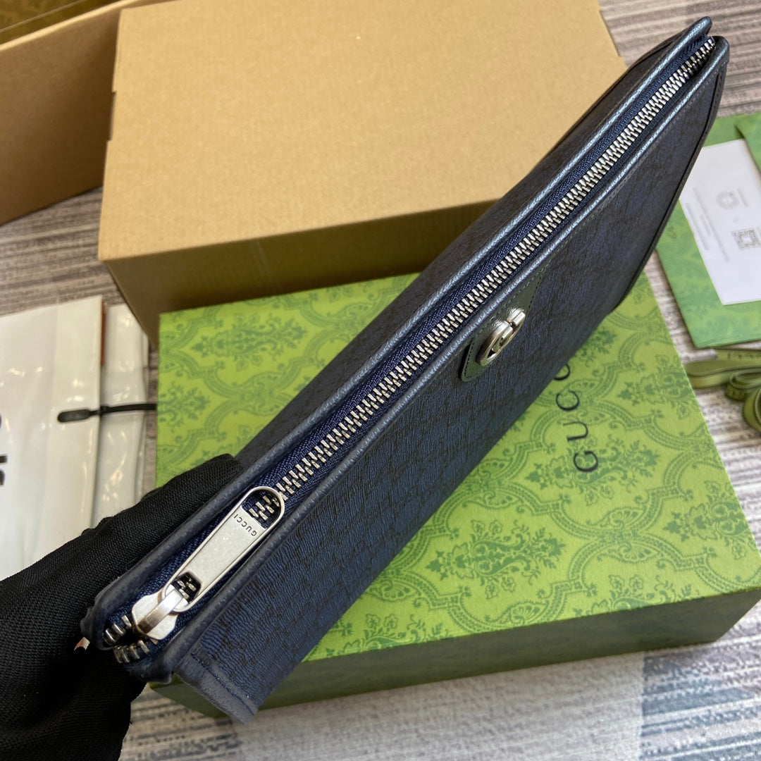 OPHIDIA GG 19 ZIP AROUND WALLET DARK BLUE CANVAS AND BLACK CALFSKIN