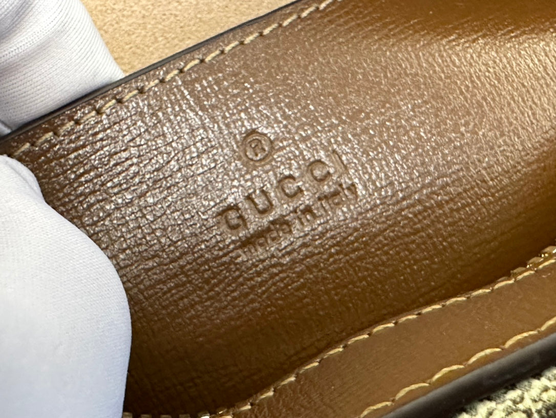 GG 18 HORSEBIT 1955 MINI BAG BEIGE CANVAS AND EBONY CALFSKIN