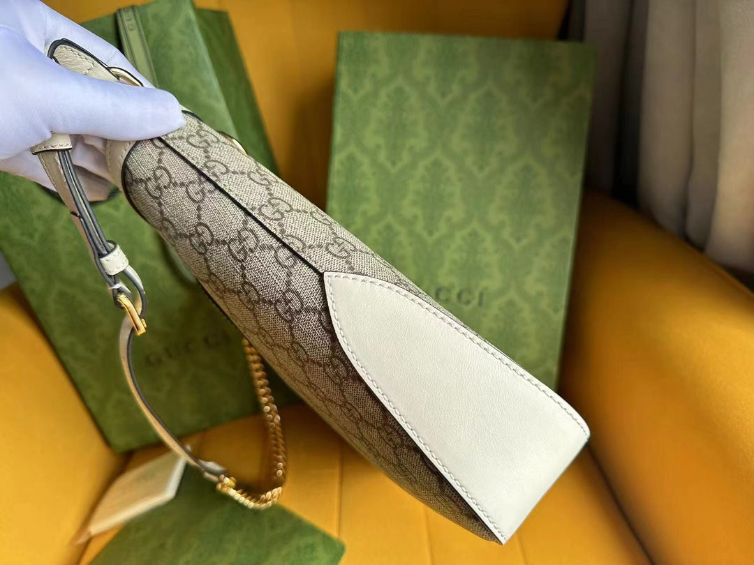 GG PADLOCK 32 SHOULDER BAG BEIGE CANVAS AND WHITE CALFSKIN