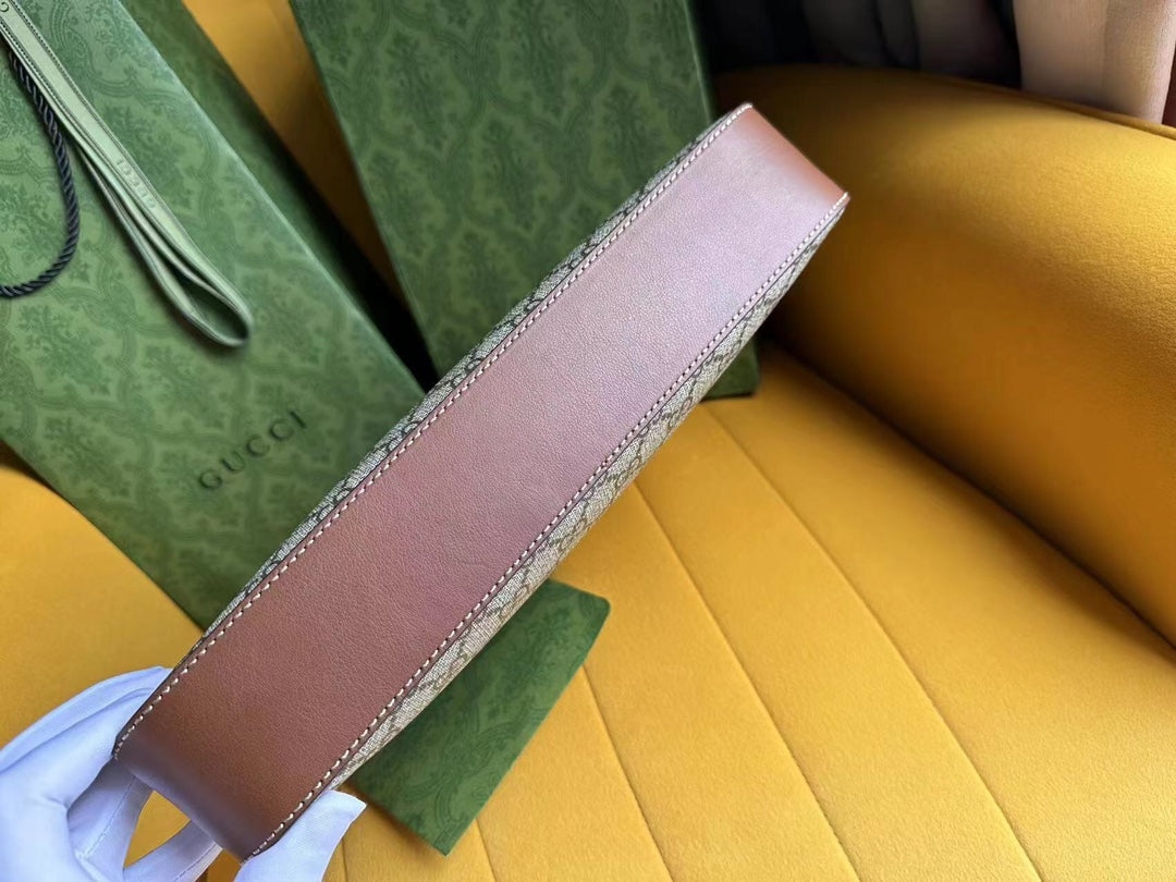 GG PADLOCK 32 SHOULDER BAG BEIGE CANVAS AND BROWN CALFSKIN