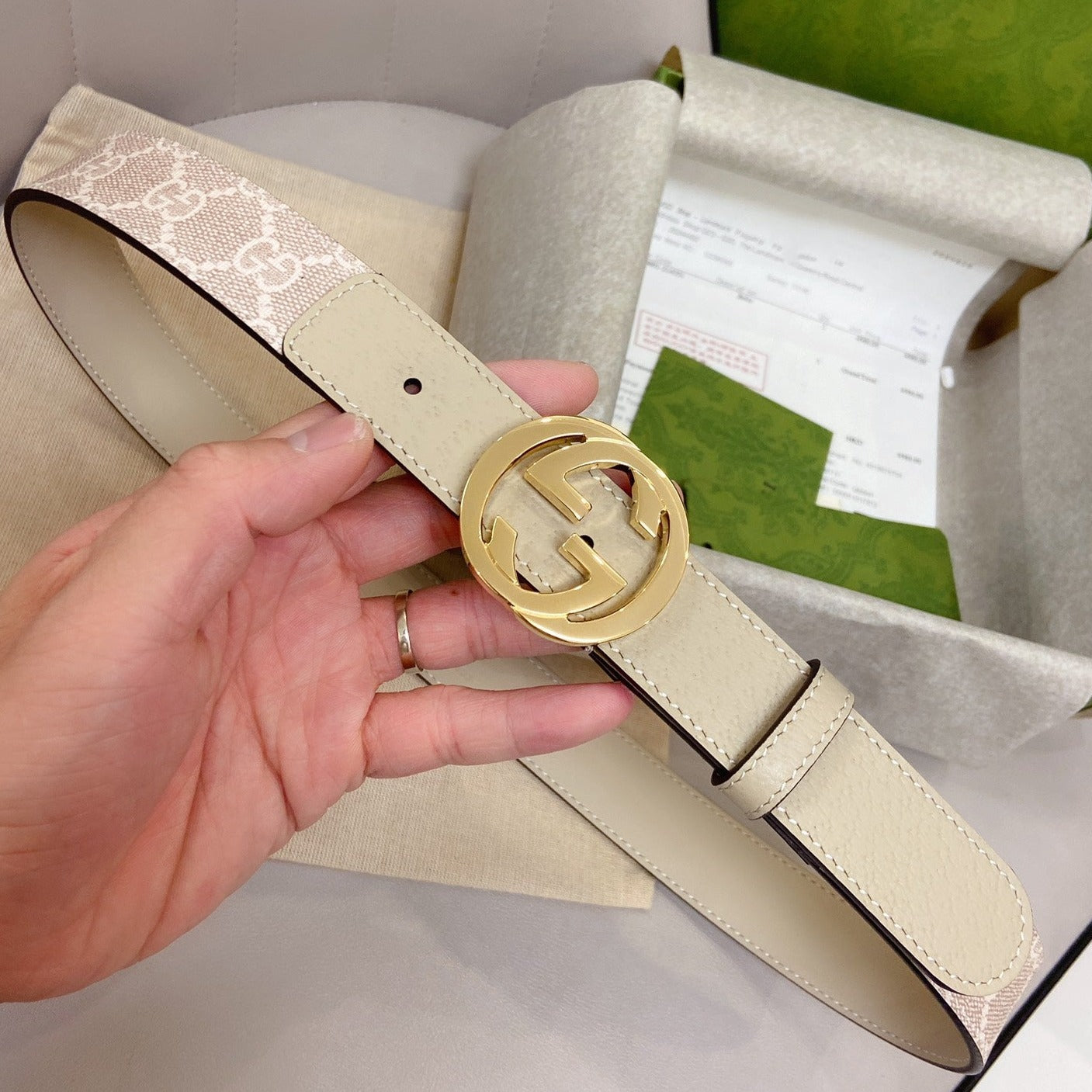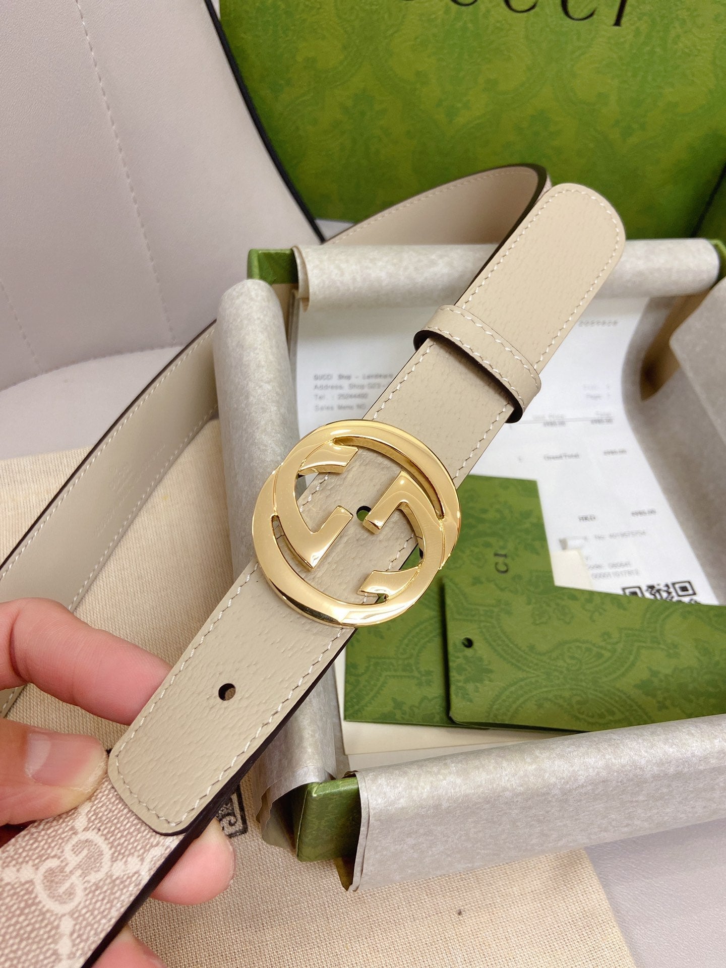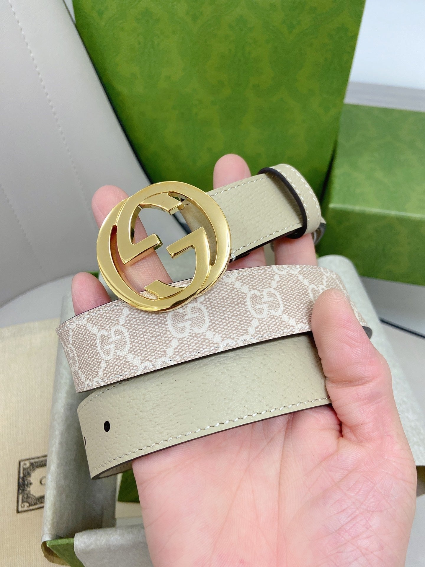 GC BELT GOLD BUCKLE IN GG SINK LEATHER 4.0CM