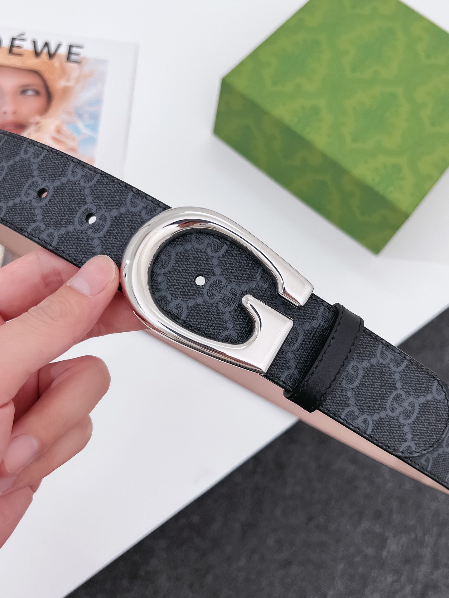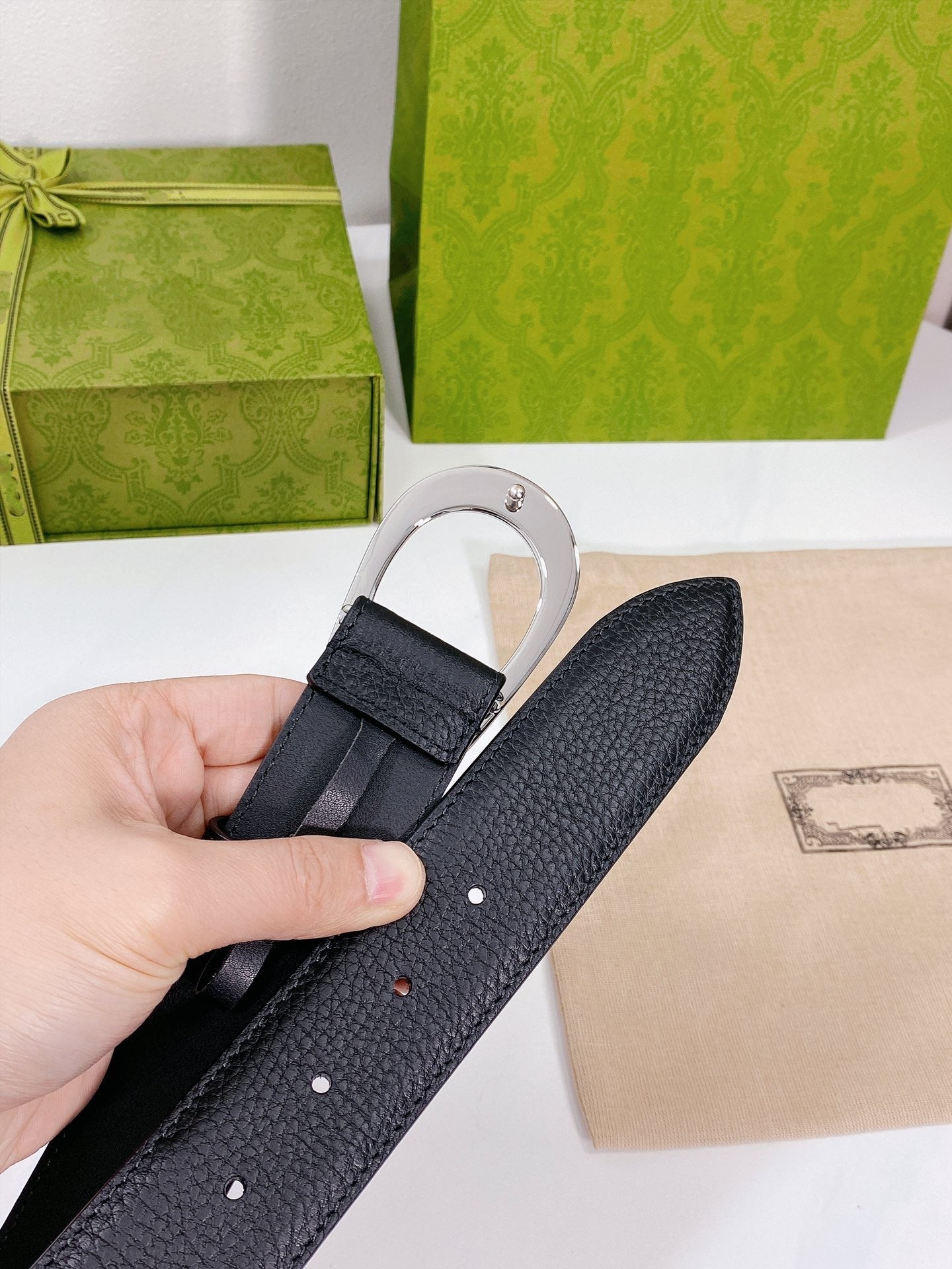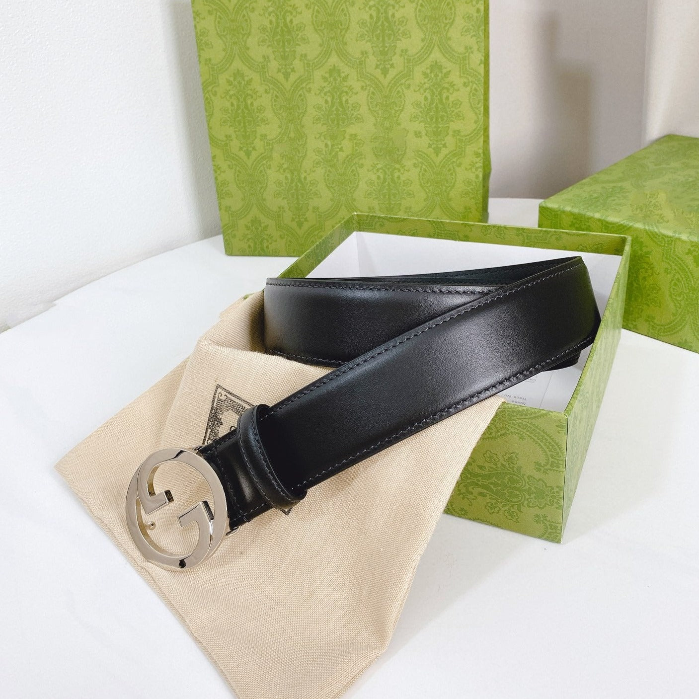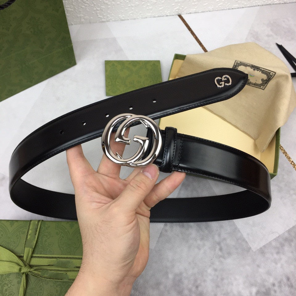 GC BELT SILVER BUCKLE BACK LEATHER 4.0CM