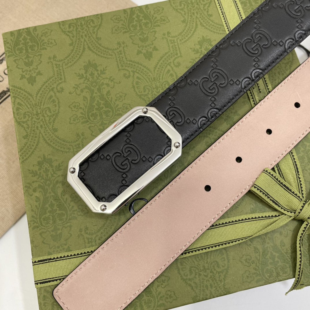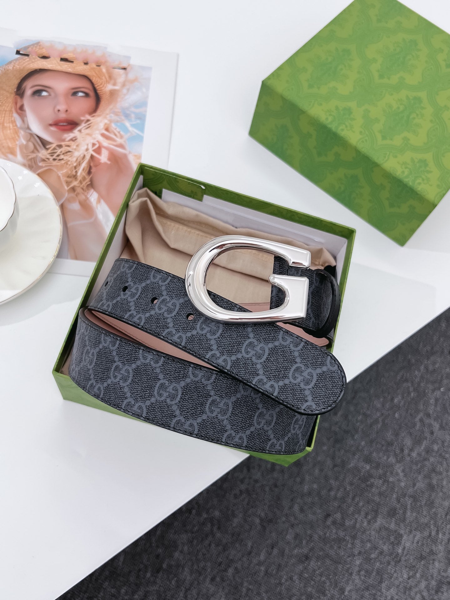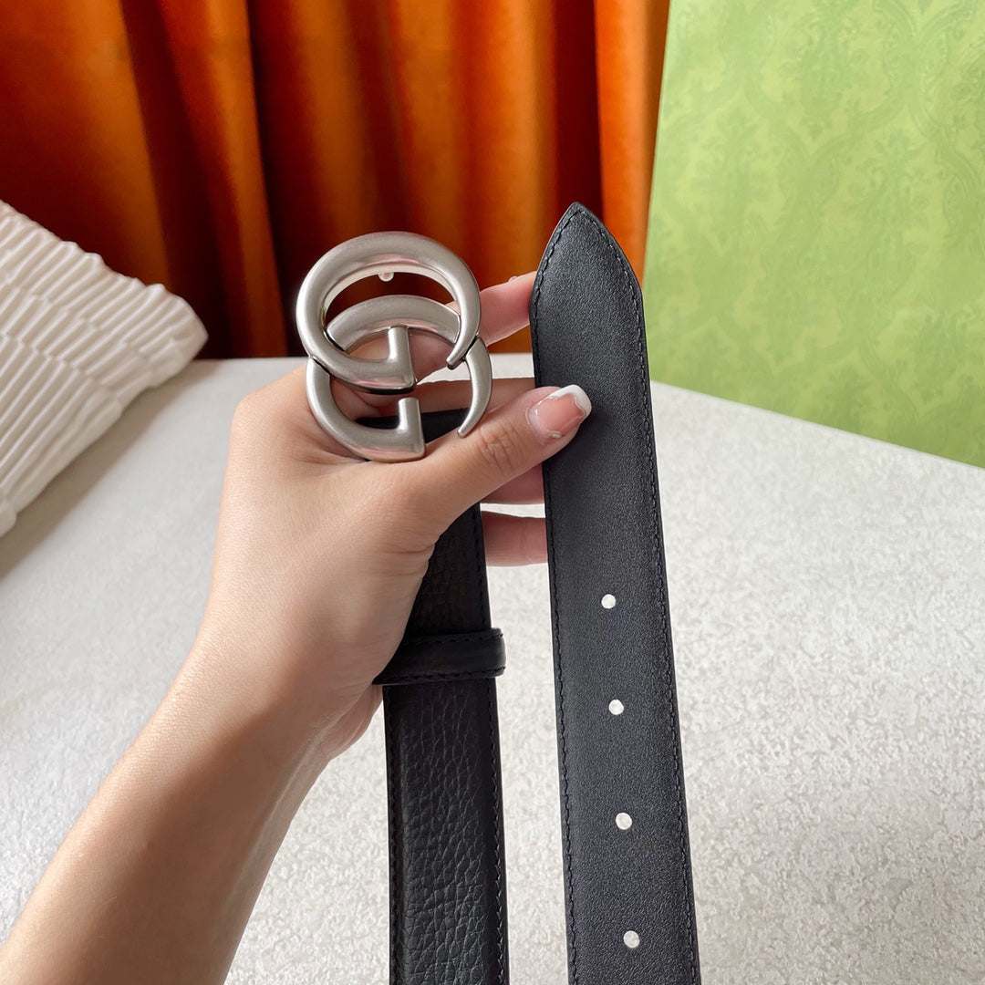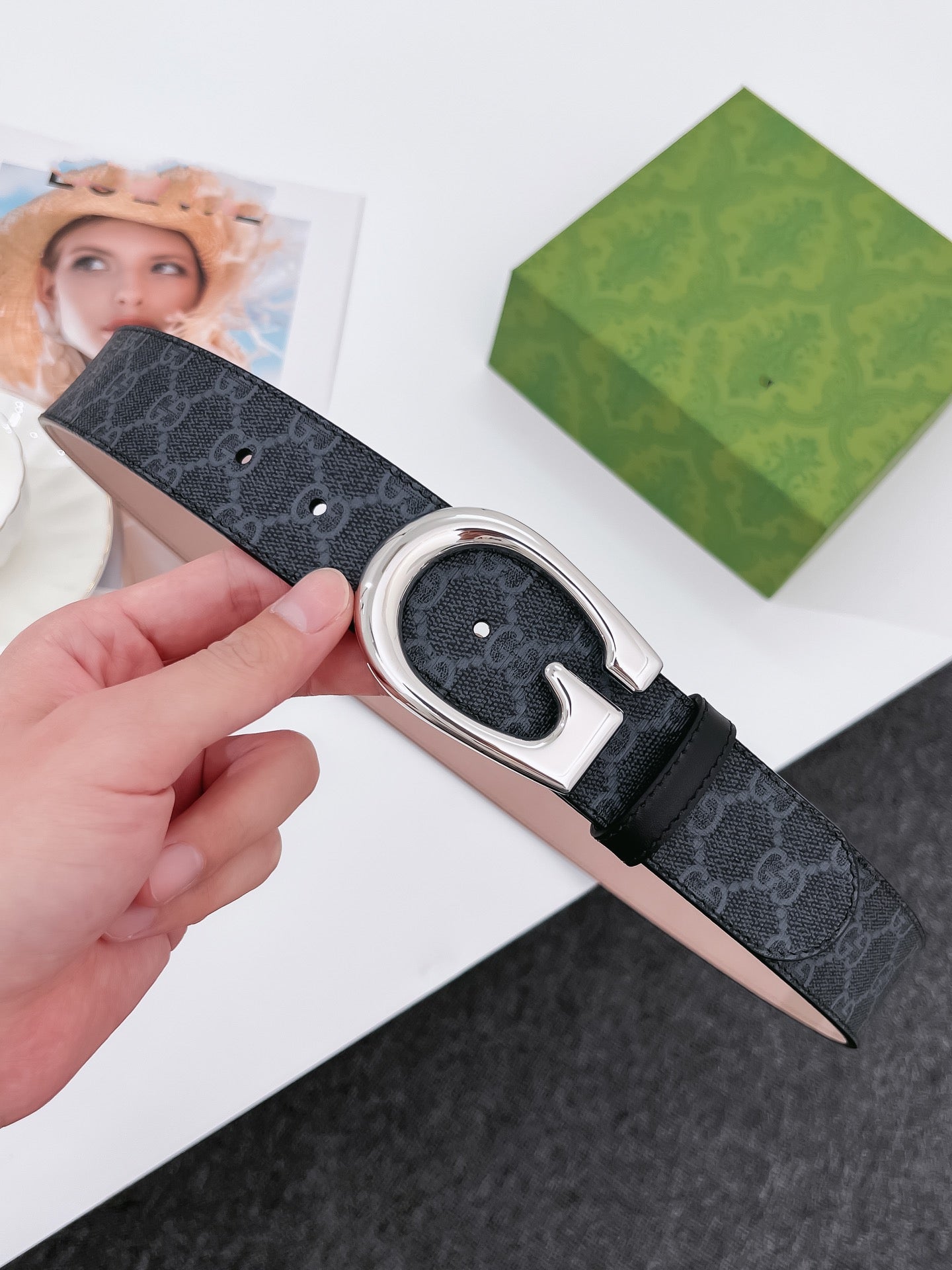 GC BELT SILVER BUCKLE BACK LEATHER 4.0CM