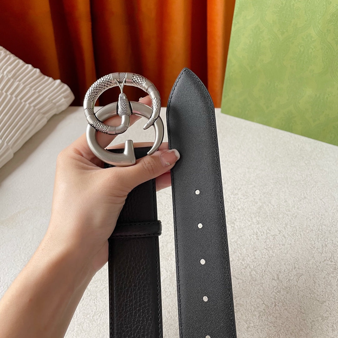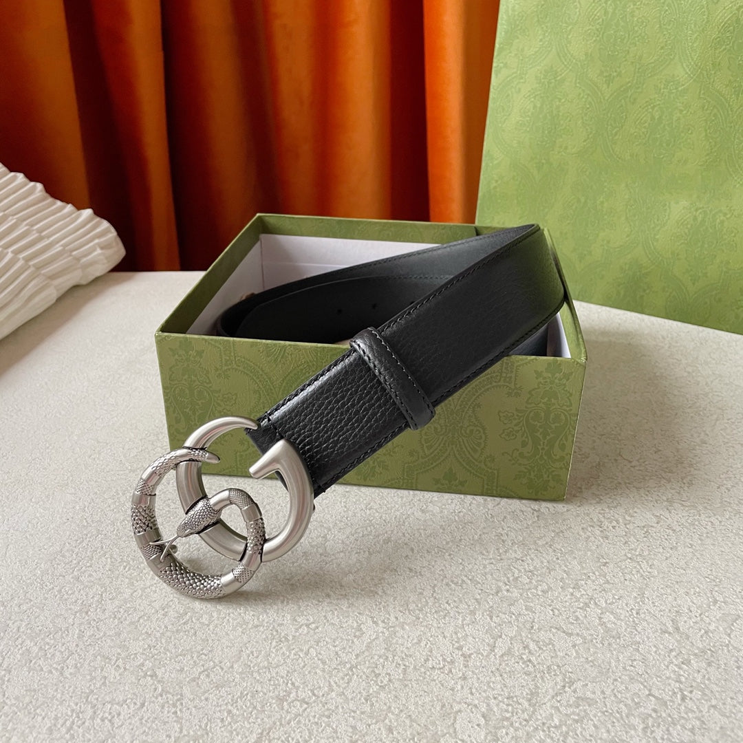 GC BELT 30MM DOUBLE BUCKLE BLACK SNAKE HEAD LEATHER