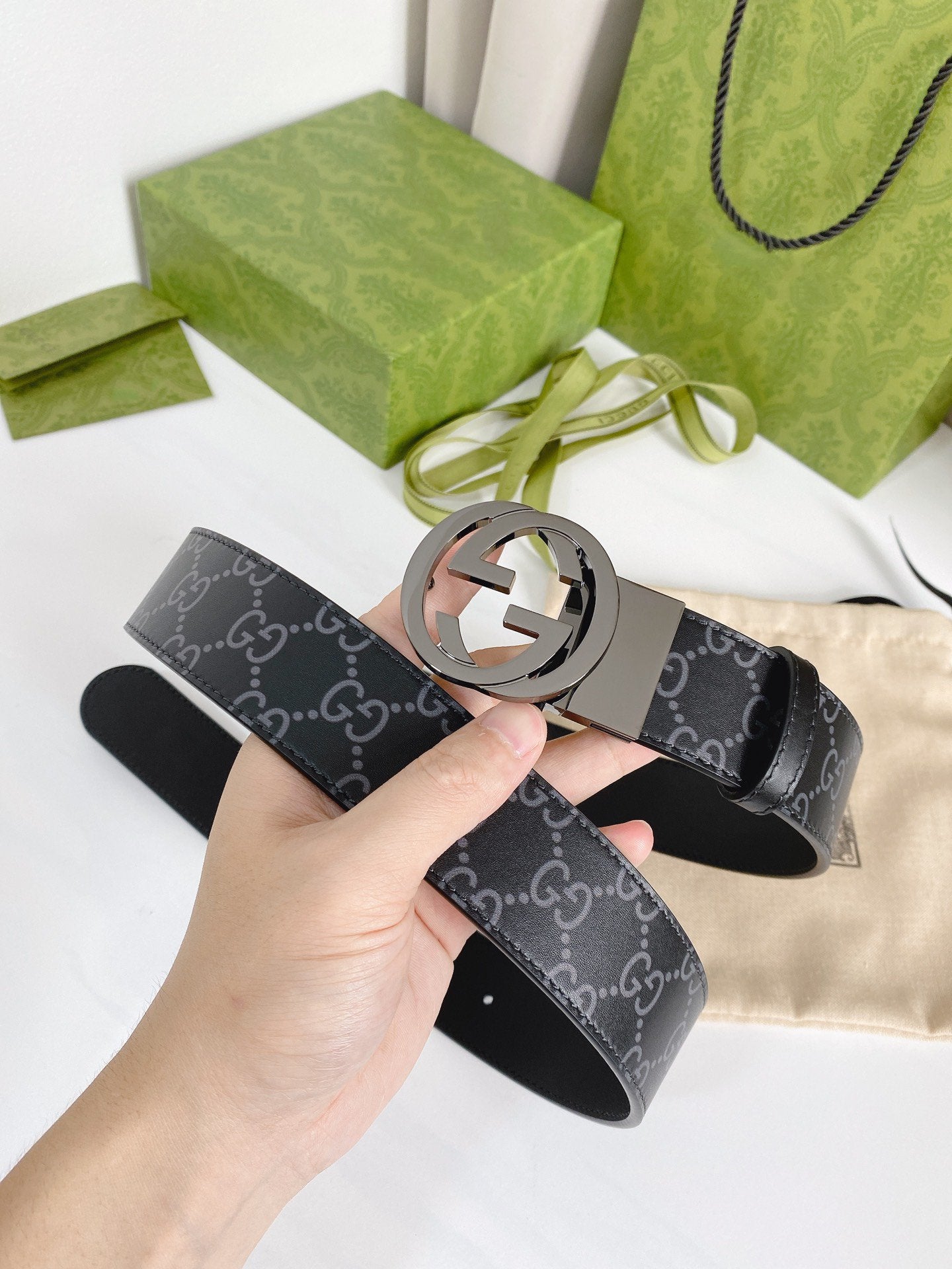 INTERLOCKING G GREY BUCKLE 38MM BLACK LEAHTER MONOGRAM