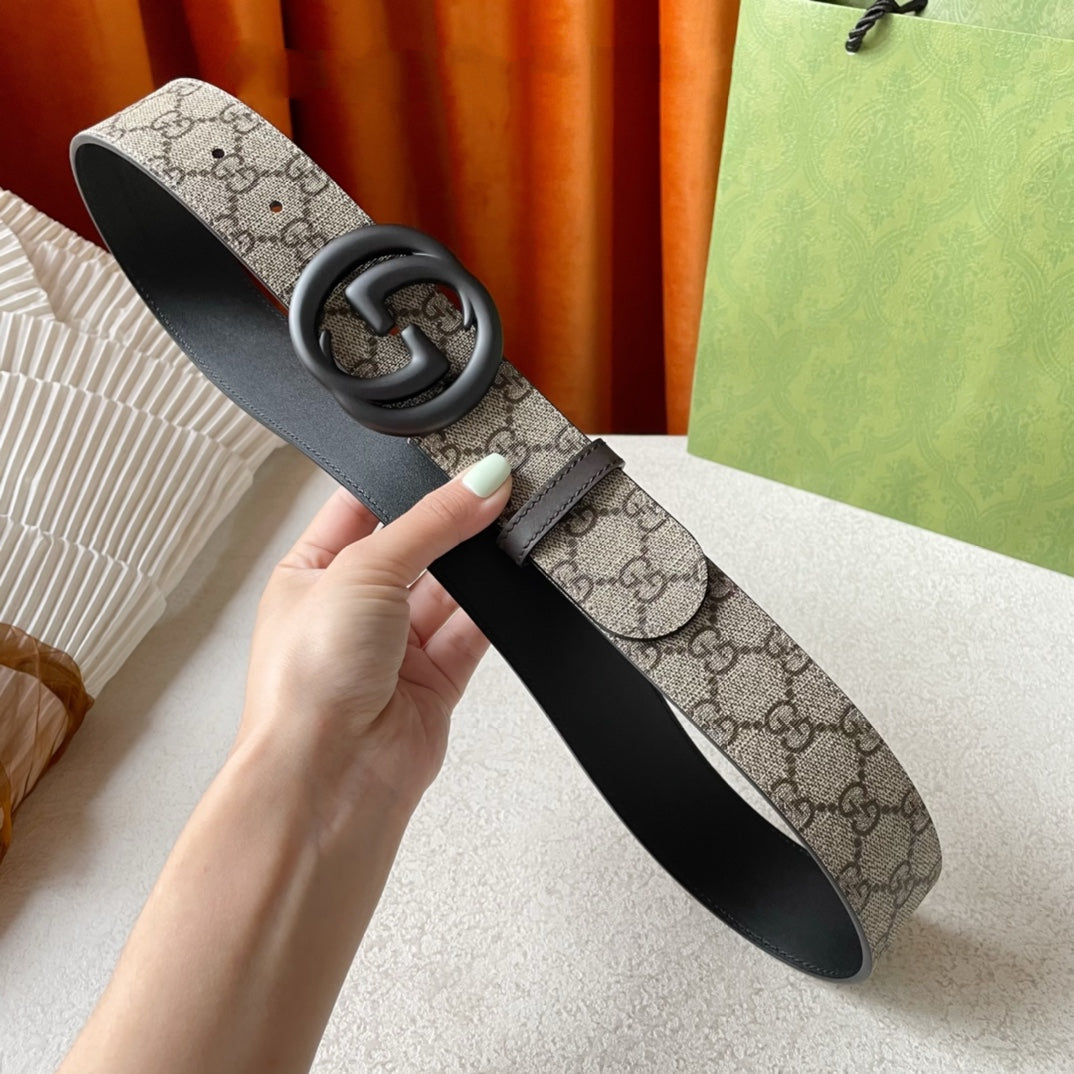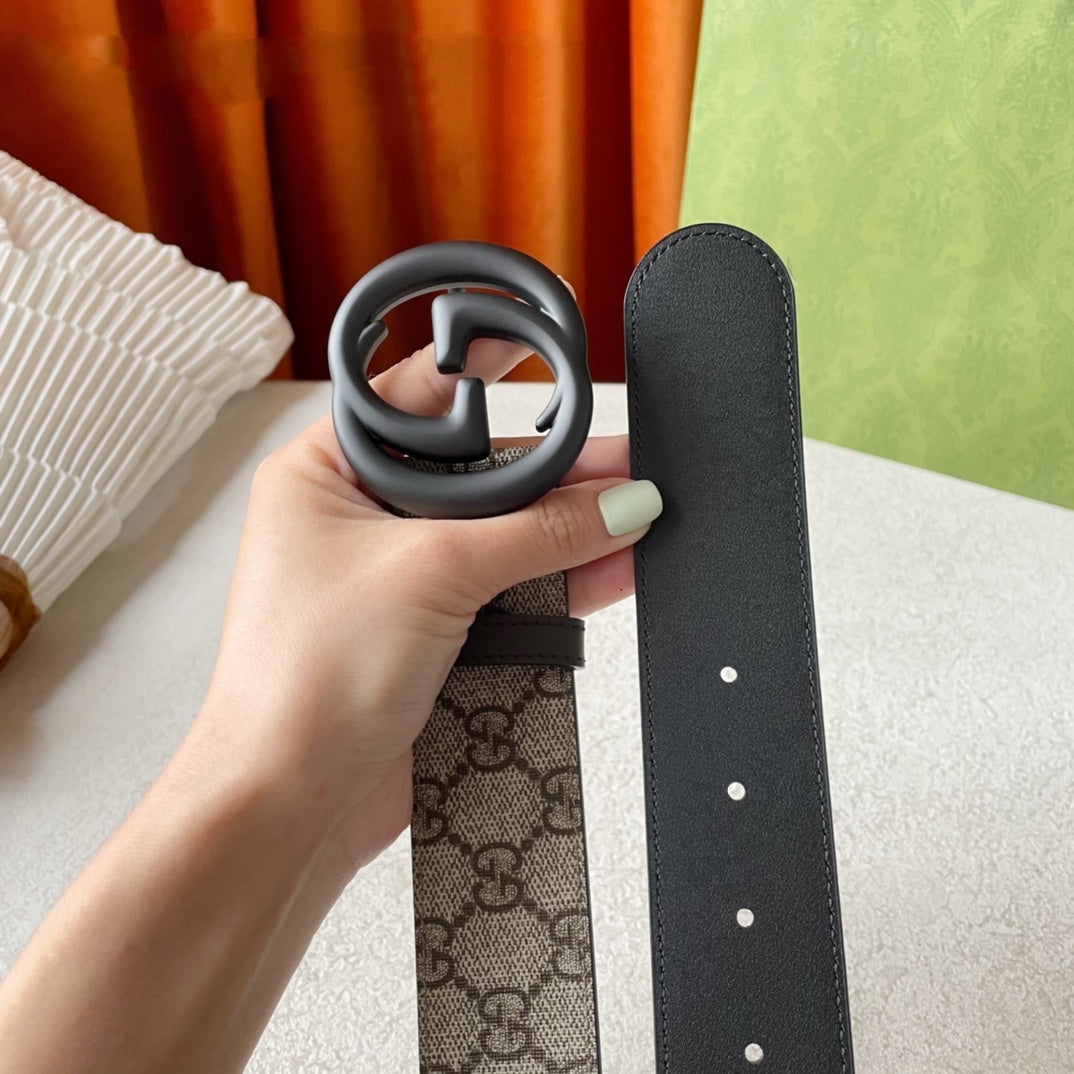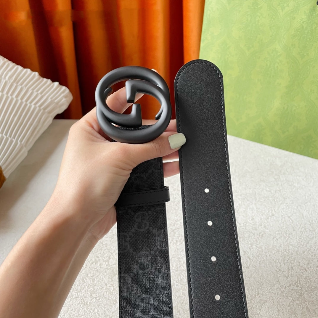 INTERLOCKING G GOLD BUCKLE 38MM BLACK LEAHTER MONOGRAM