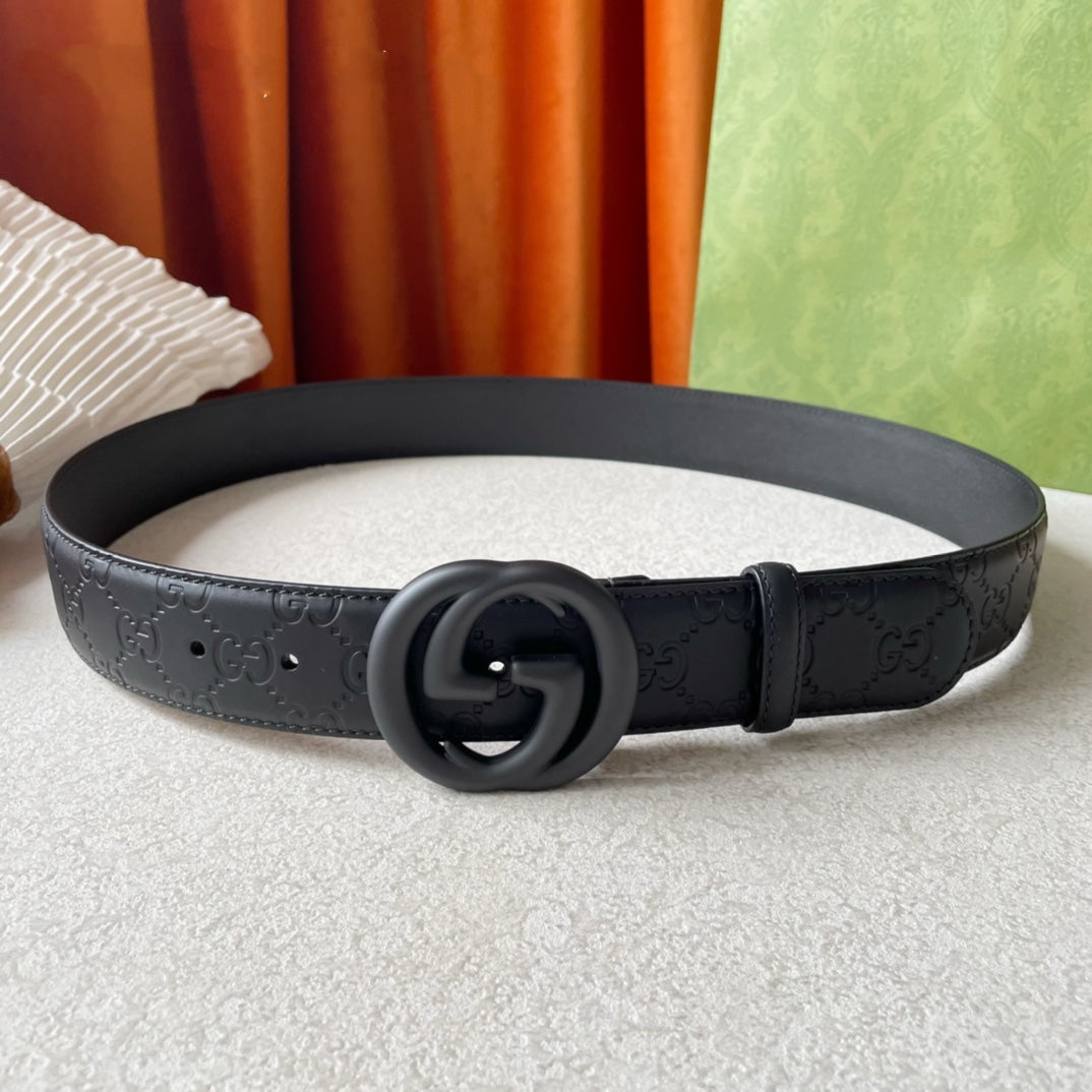 GG BELT IMPRINTED BLACK LEATHER 40MM