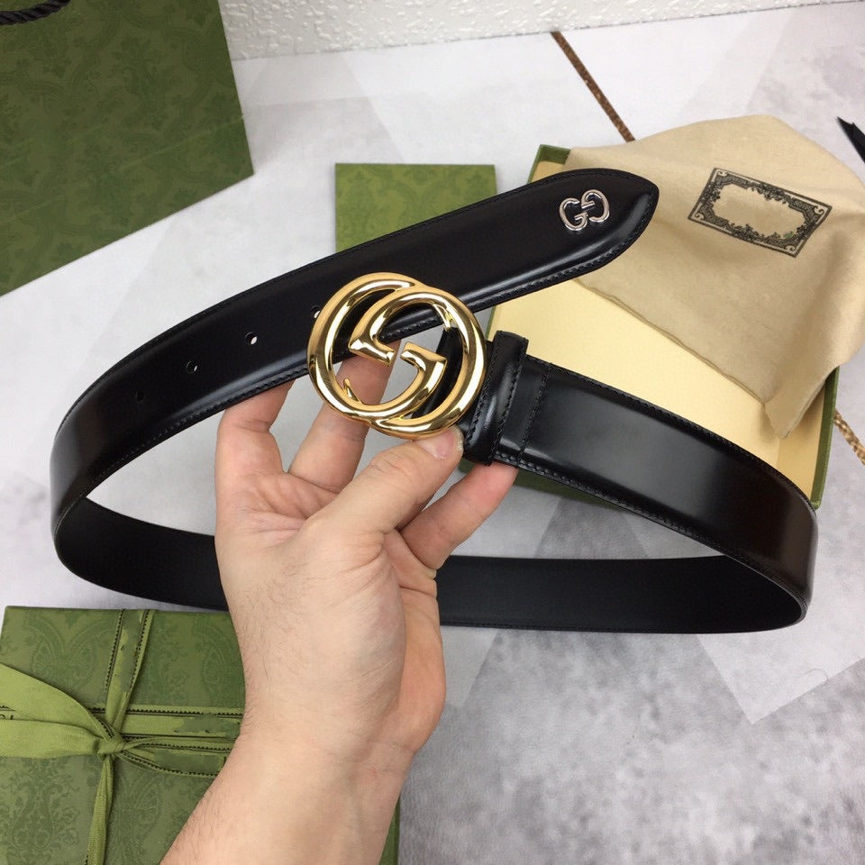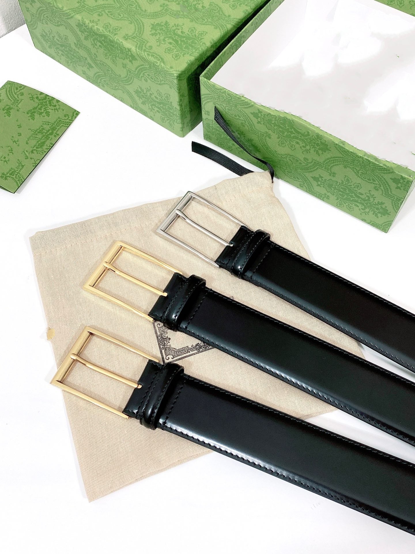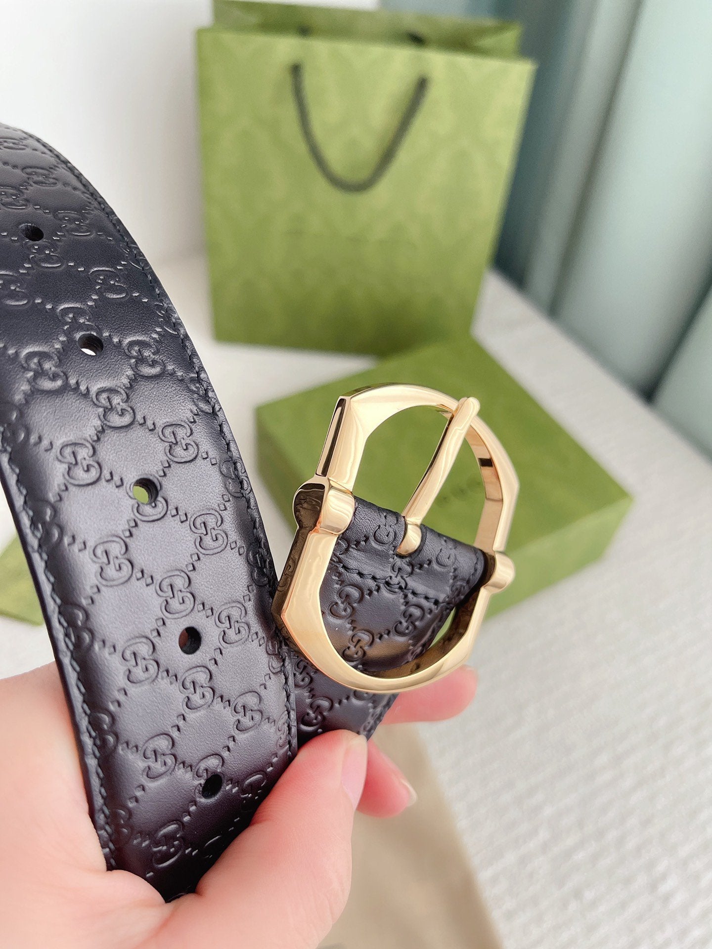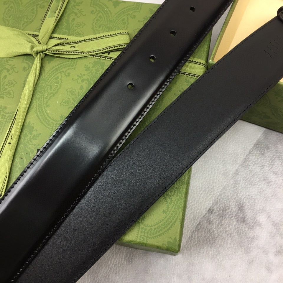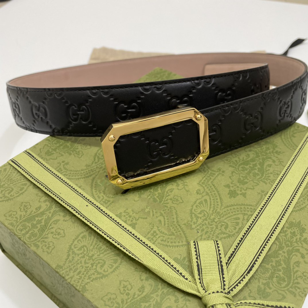 G BELT GOLD SQUARE INSTALL BUCKLE BLACK LEATHER 3.5CM