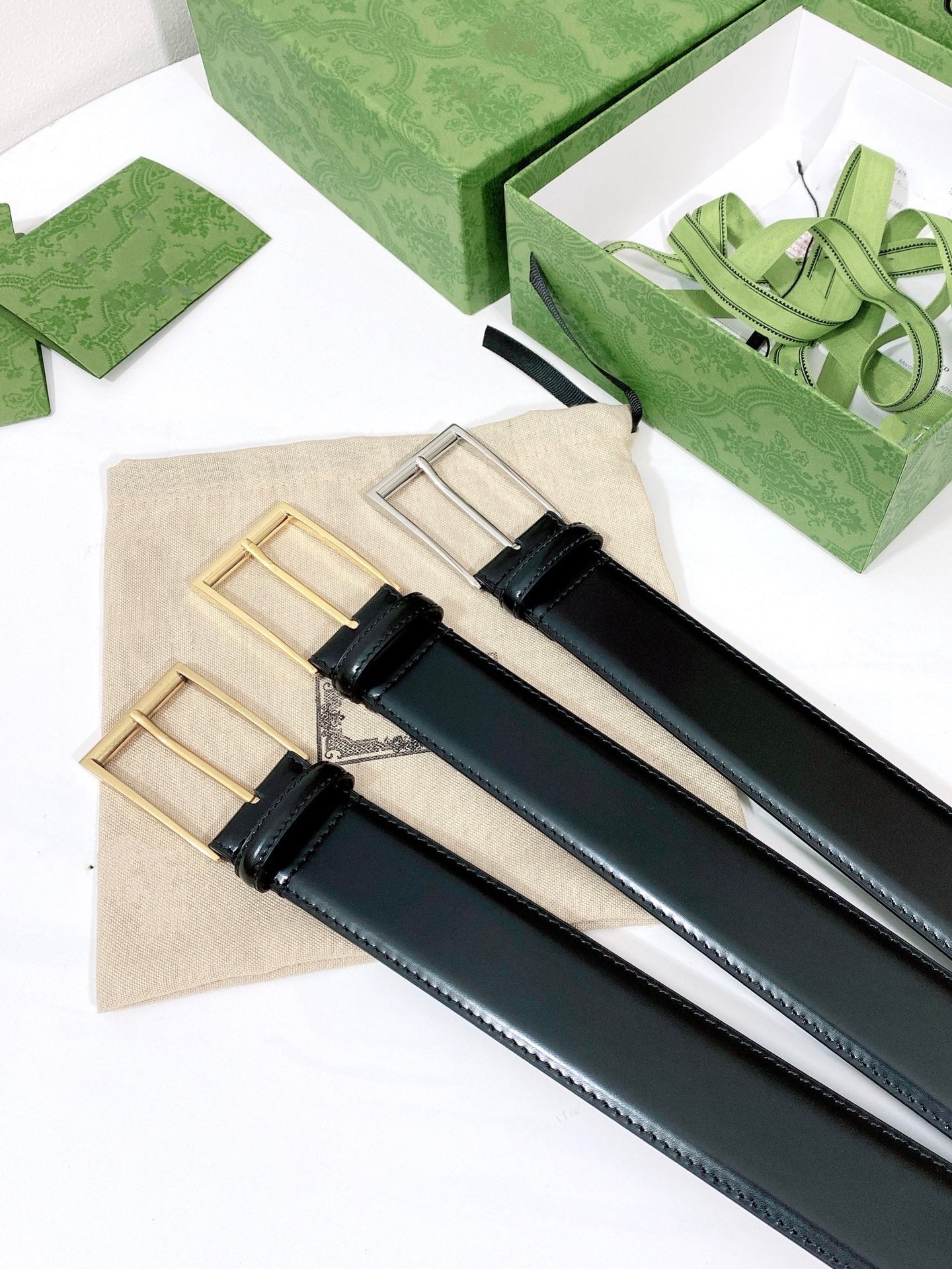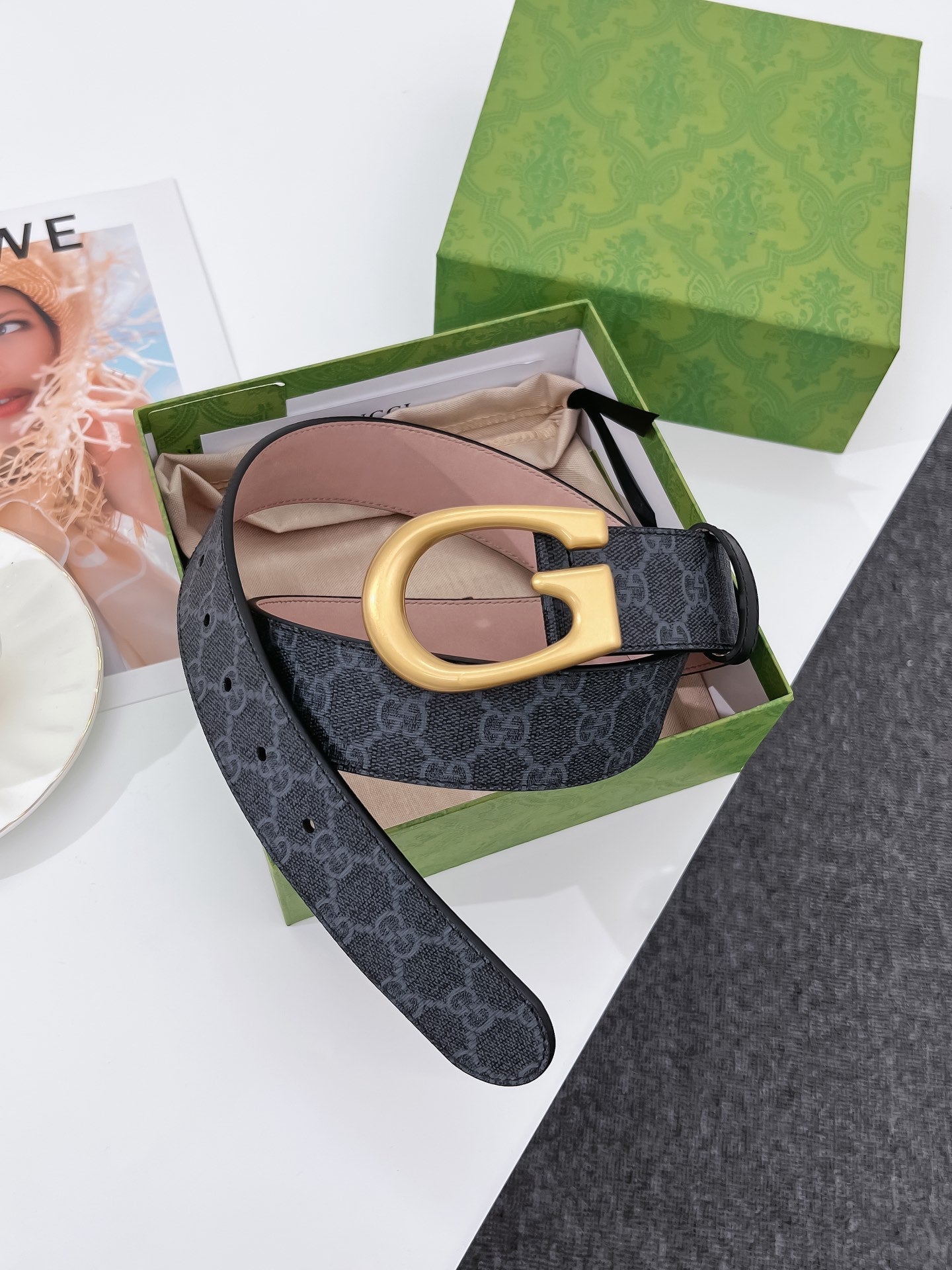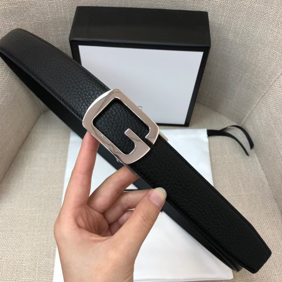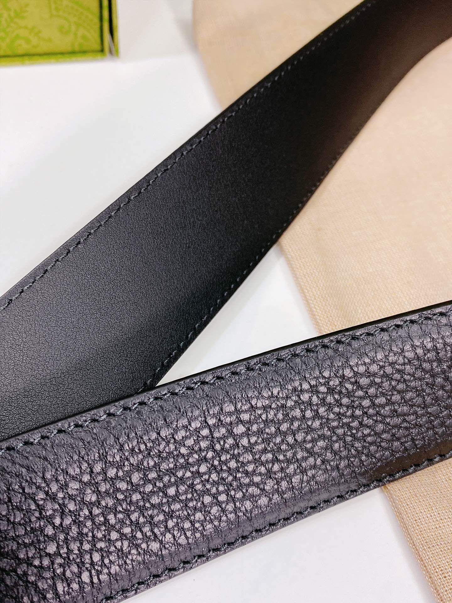 G BELT GOLD SQUARE INSTALL BUCKLE BLACK LEATHER 3.5CM
