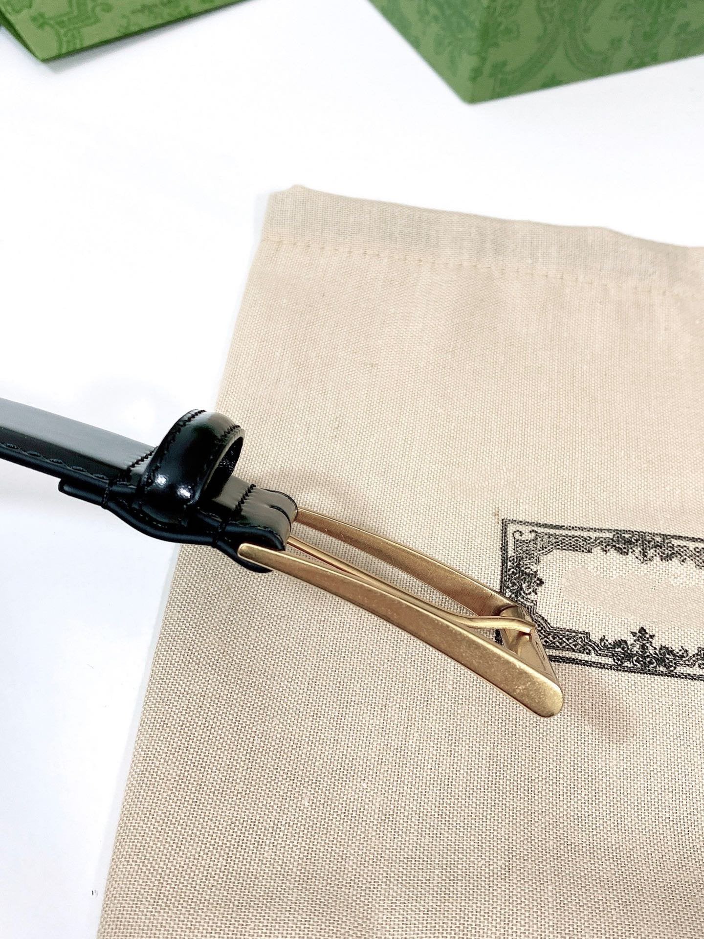 GG BELT DOUBLE G GOLD BUCKLE 20MM BLACK LEATHER