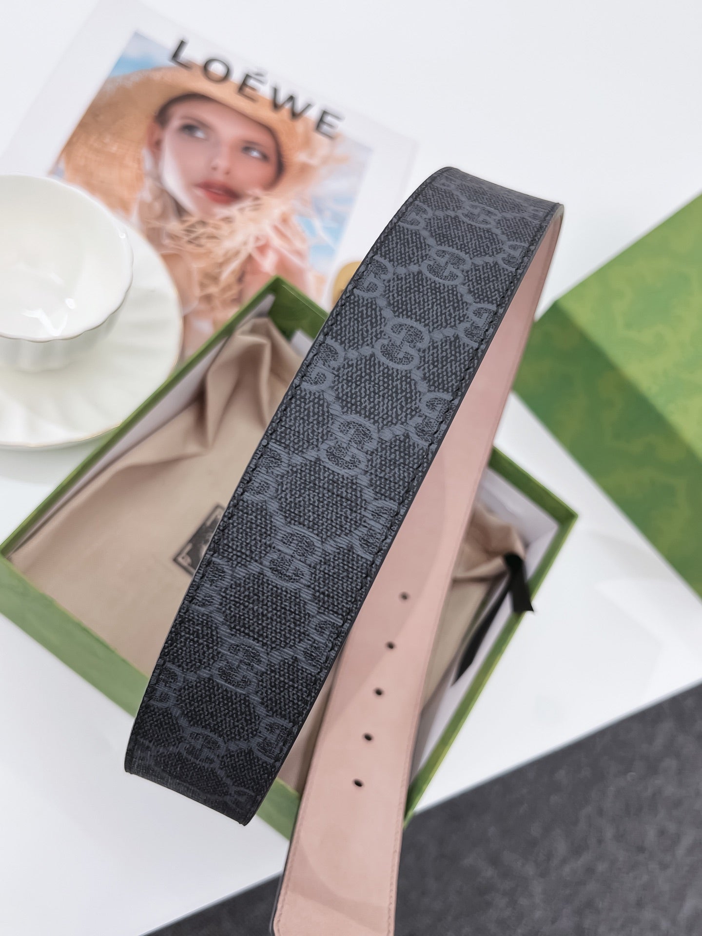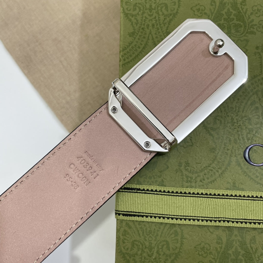 GC BELT SILVER BUCKLE IN GG SINK LEATHER 4.0CM