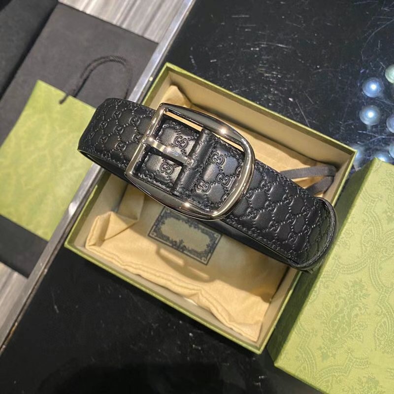 G BELT SILVER SQUARE INSTALL BUCKLE BLACK LEATHER 4.0CM