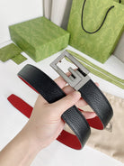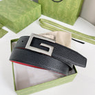 G BELT SILVER BUCKLE RED BLACK LEATHER 3.5CM